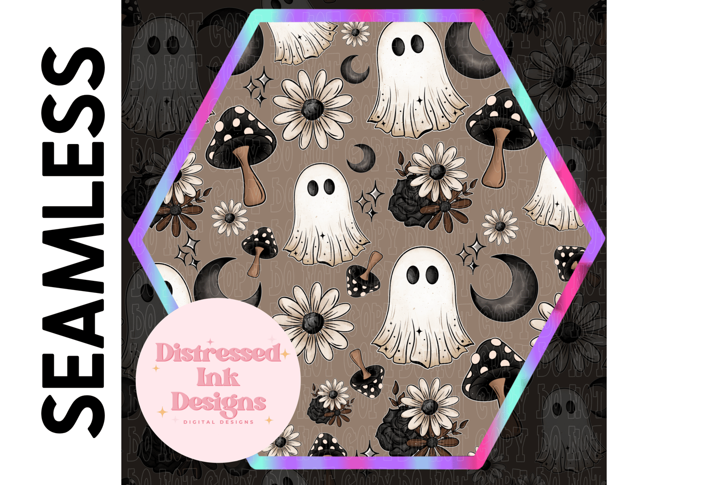 Dark Tan Ghosts and moons Seamless Pattern PNG