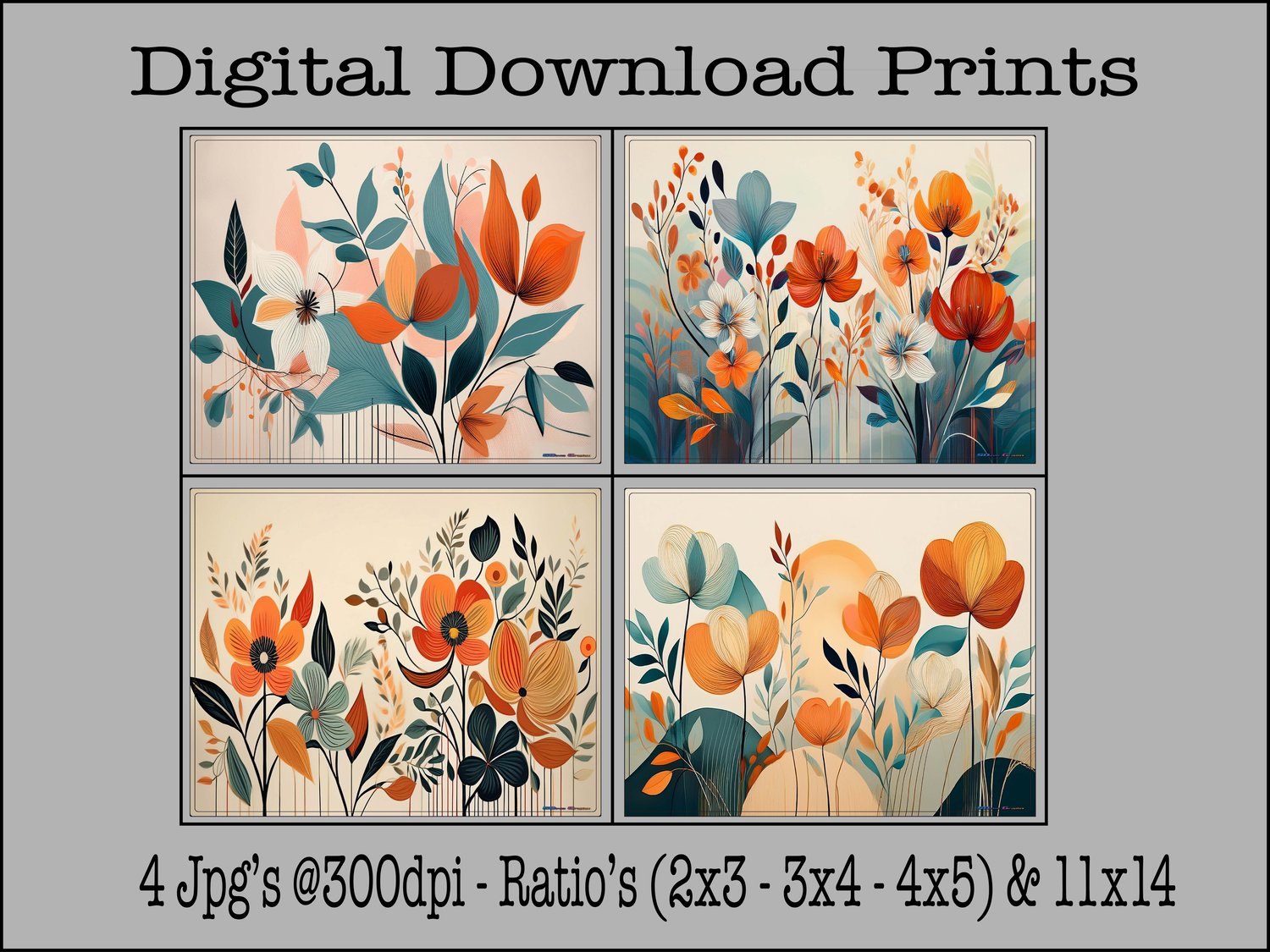 Abstract Boho Style Flowers Prints - Digital Download Prints...