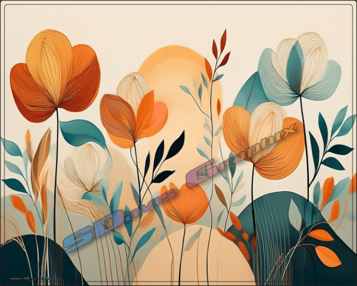 Abstract Boho Style Flowers Prints - Digital Download Prints - Landscape Digital Wall Art
