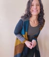 Cozy McBlanket is basically that—a cozy blanket! It’s worked from side-to-side, has a couple of holes for adding sleeves, and uses short rows along the upper edge to help the blanket curve around your shoulders and neck. But otherwise, it’s a rectangle with sleeves and not quite a cardigan. The fit is generous, flexible, and will vary according to how exactly you want to wear it.