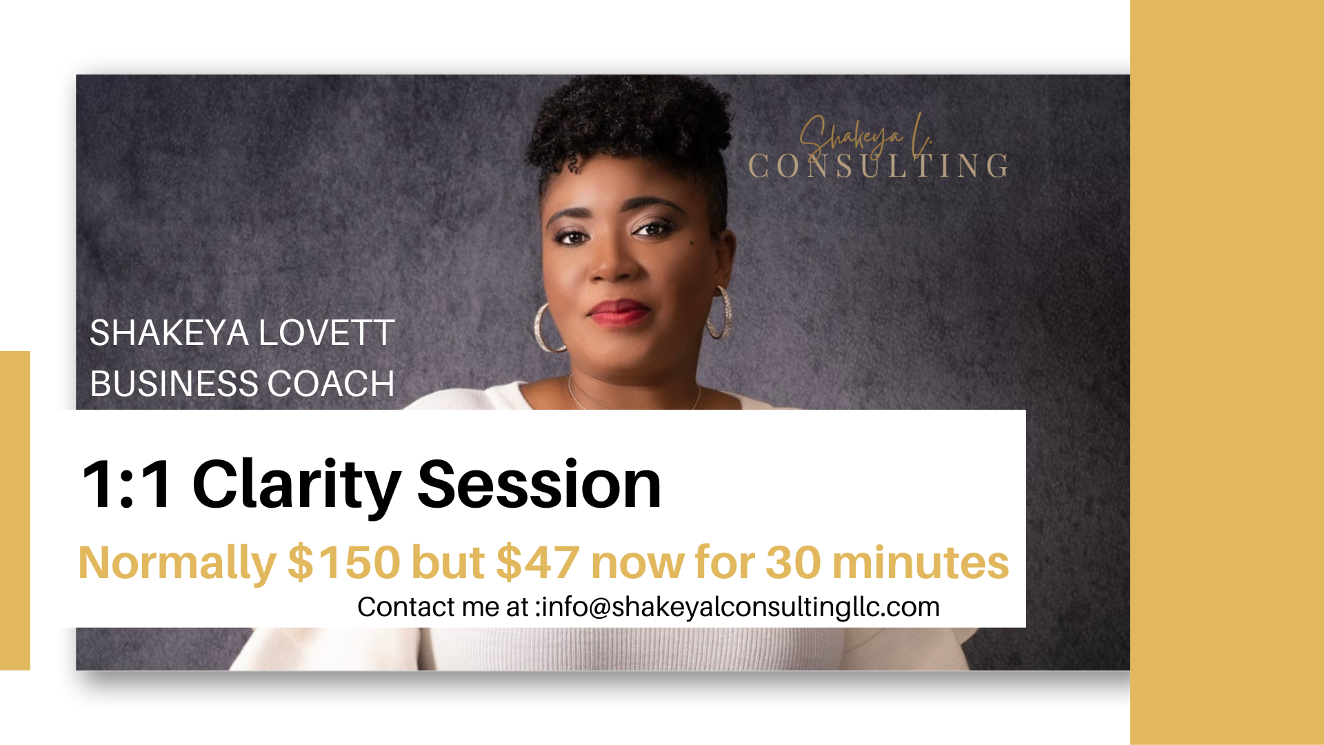 This will be a consultation call to help you gain clarity with your business journey. This could be via zoom or simply on the phone. The call will be 30 minutes of information. Come with your questions and note pad. Let's get you started!