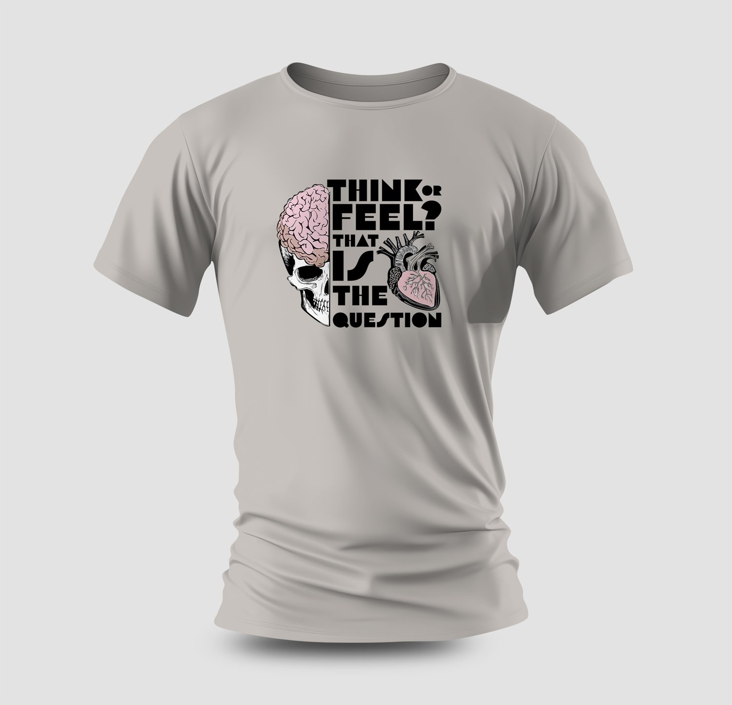 A bold, thought-provoking sublimation design featuring a split skull and brain paired with an anatomical heart. Perfect for t-shirts, hoodies, tote bags, posters, and psychology or philosophy-inspired apparel.