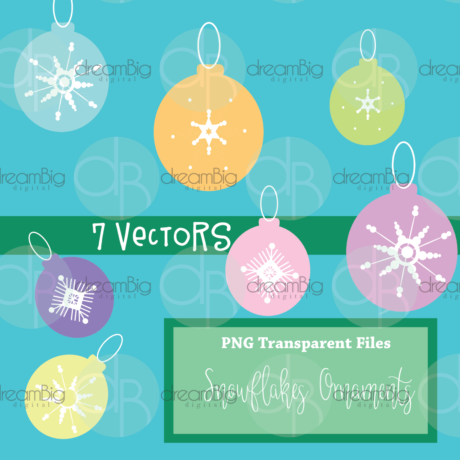 An array of Snowflakes Ornaments great for cards and pattern making. This clip includes 7 Files PNG Format 300DPI