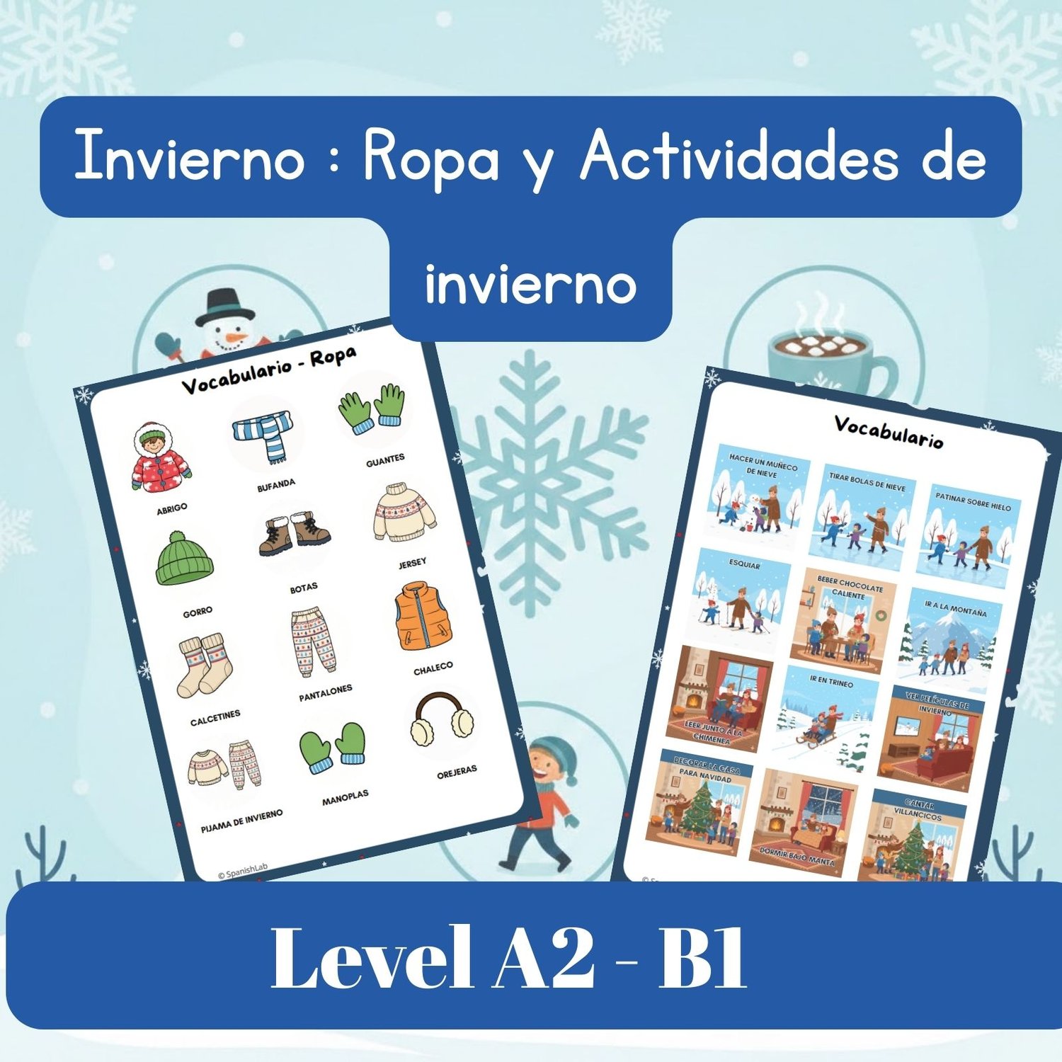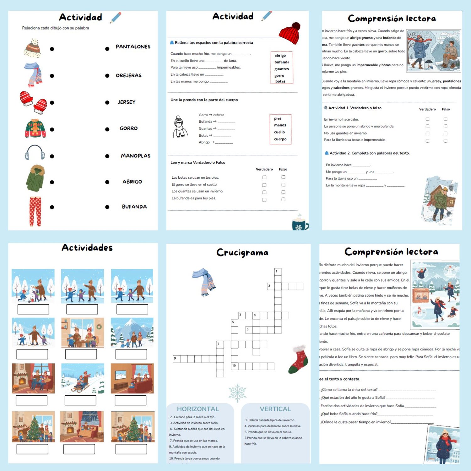 This 13-page Spanish winter worksheet pack is designed for A2-level learners and focuses on winter clothing and winter activities through engaging and varied exercises.