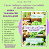 - Recettes et Plans de Repas : Profitez de recettes simples et délicieuses pour chaque étape de votre journée, du jus de céleri matinal aux légumes vapeur du soir.