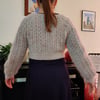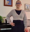 This cardigan is worn with a negative ease of 10 to 20 cm / 4 to 8 inches, depending on size.
