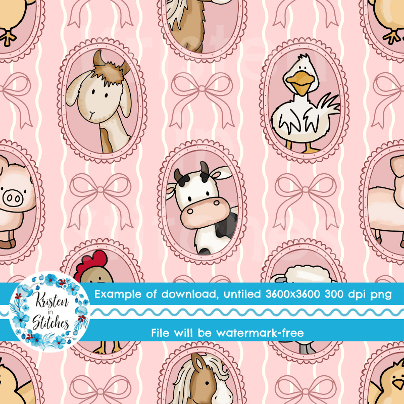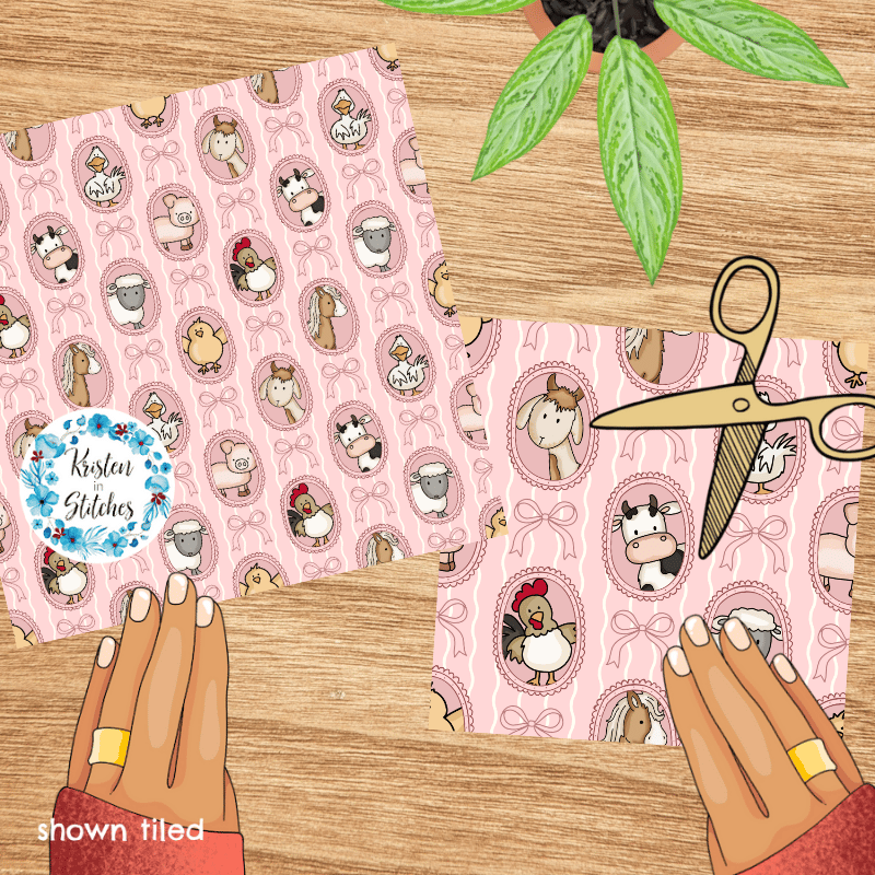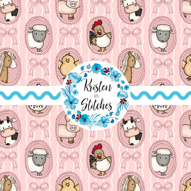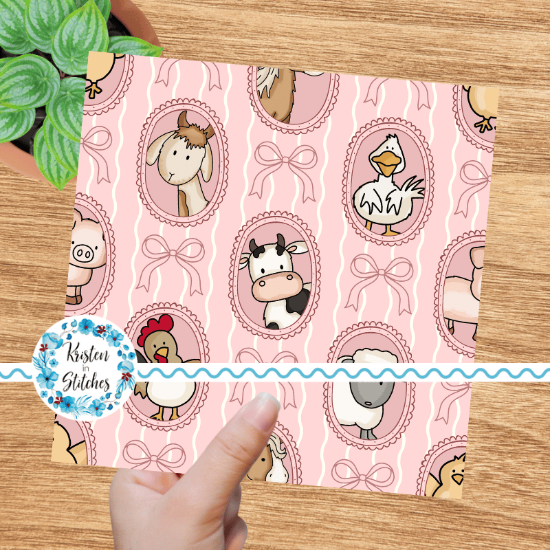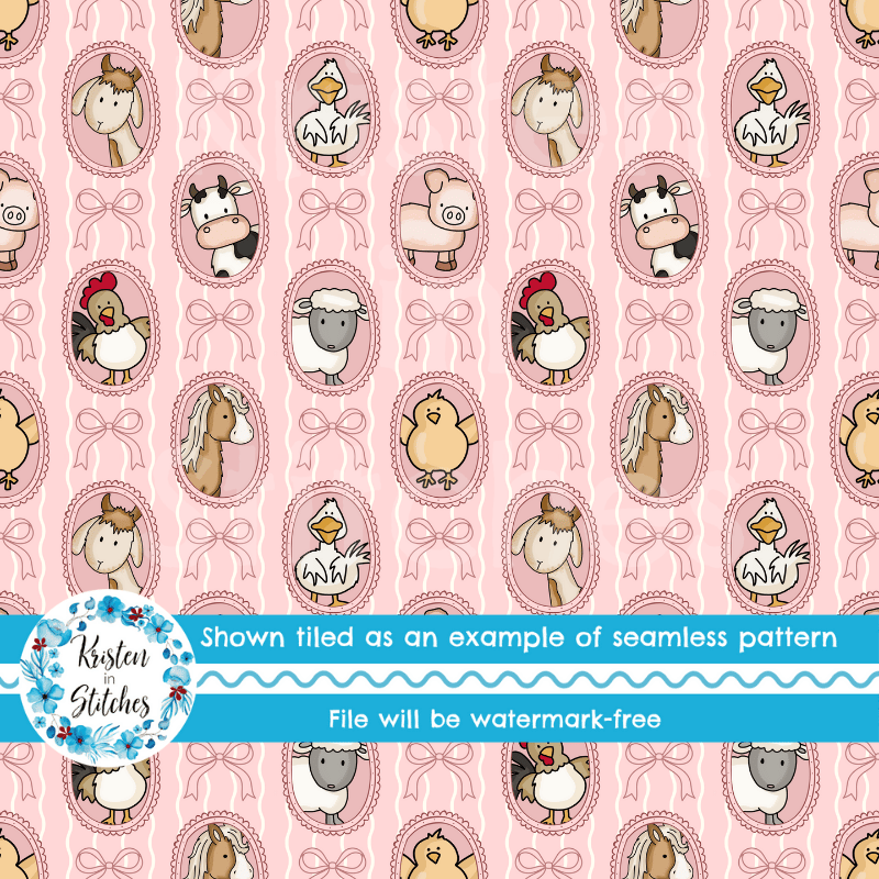 Farm Animal Friends Photo Wall Picture Frames Seamless Pattern in Pink