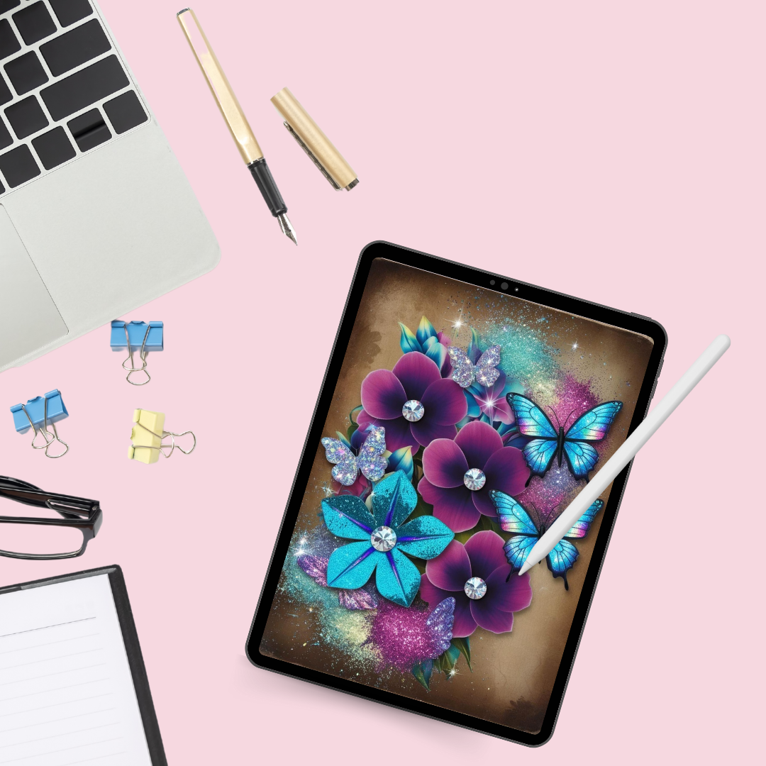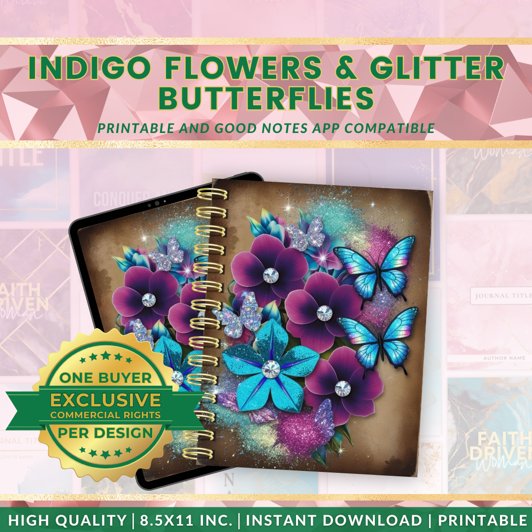 Immerse in creativity with our Indigo Flower & Glitter Butterflies Journal Cover, designed for compatibility with the Goodnotes app. Fully editable and thoughtfully designed in an 8.5x11 in format, these covers seamlessly fuse artistic expression with practicality.