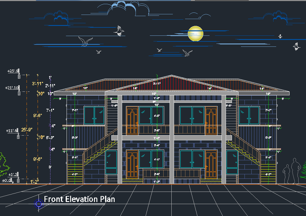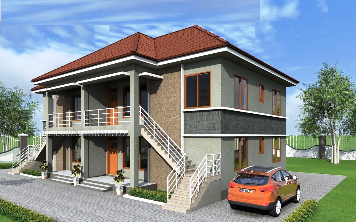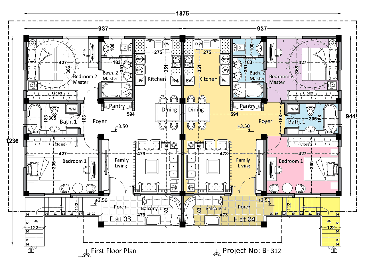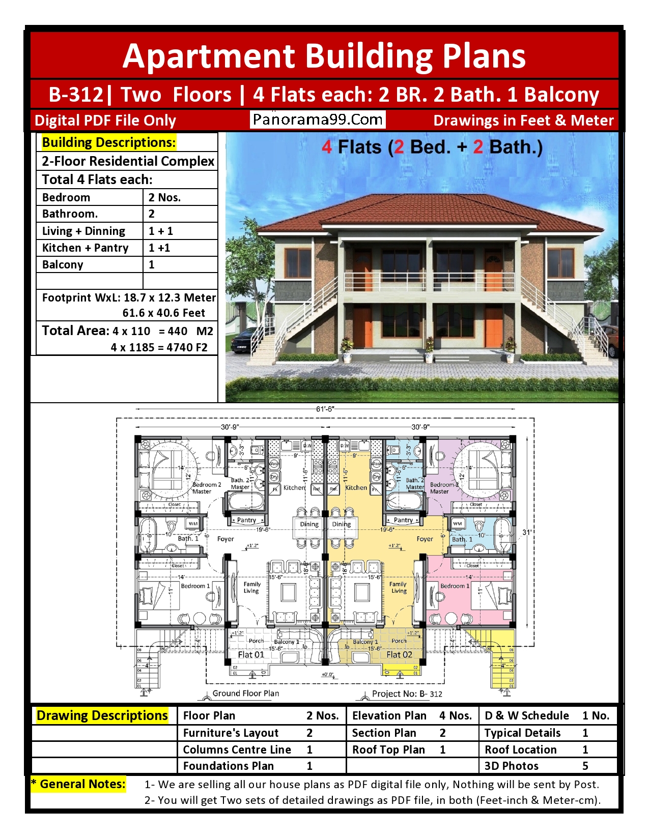 B-312| Custom Duplex Apartment Building Plans – 4 Flat, 2 BR Each