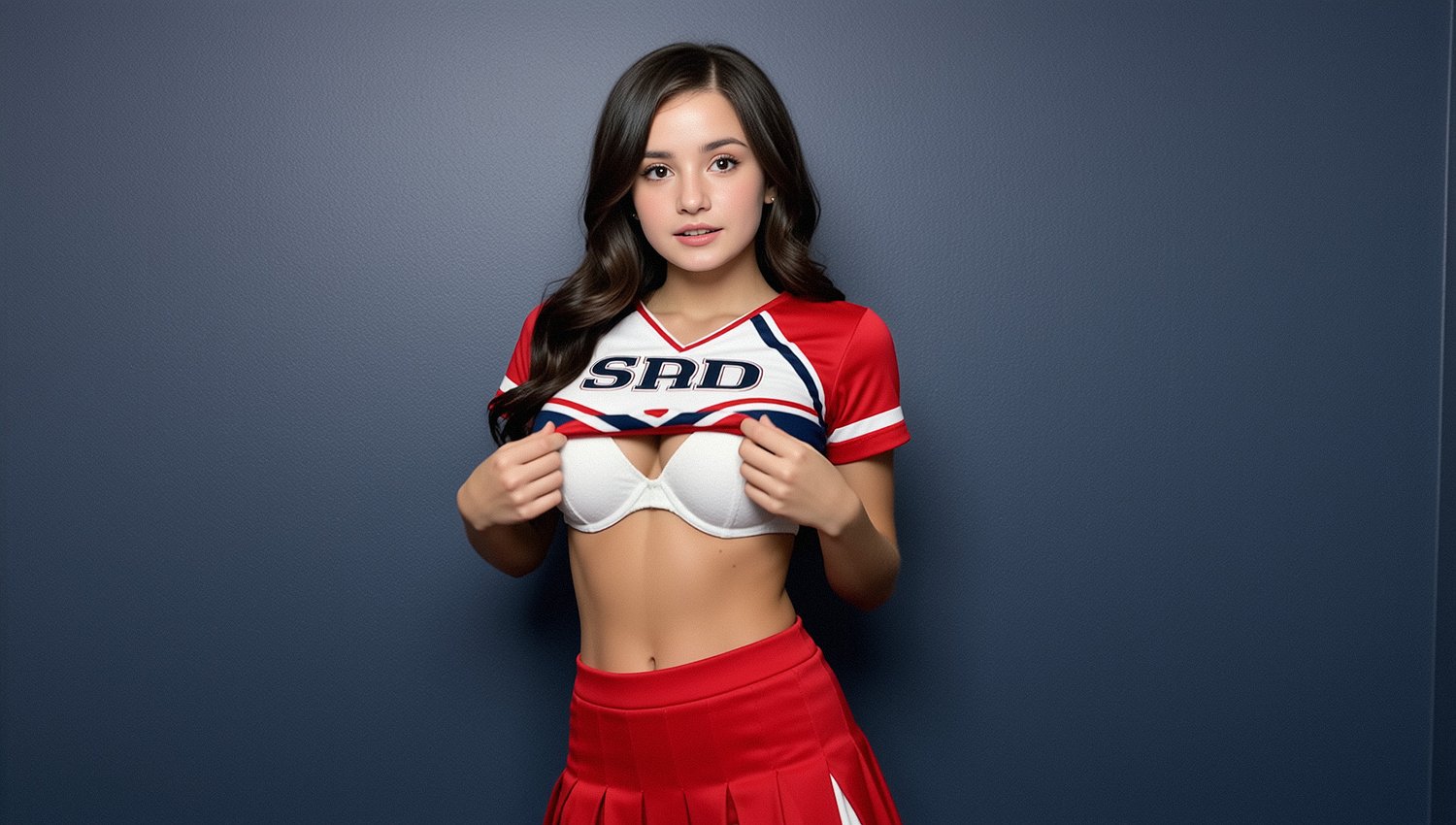 She is 18 years old with mixed Greek/American heritage, a head cheerleader with a perfectly toned body and much more than a couple of handfuls of team spirit under her shirt. In this photoset, Maddie is cheering for Shameless Book Deals, doing her best to get you excited. Nothing builds a sense of anticipation like a head cheerleader. There's something about those short skirts and form-fitting tops that you can't resist! That said... I'm sure you'll enjoy her just as much out of the uniform as in it.