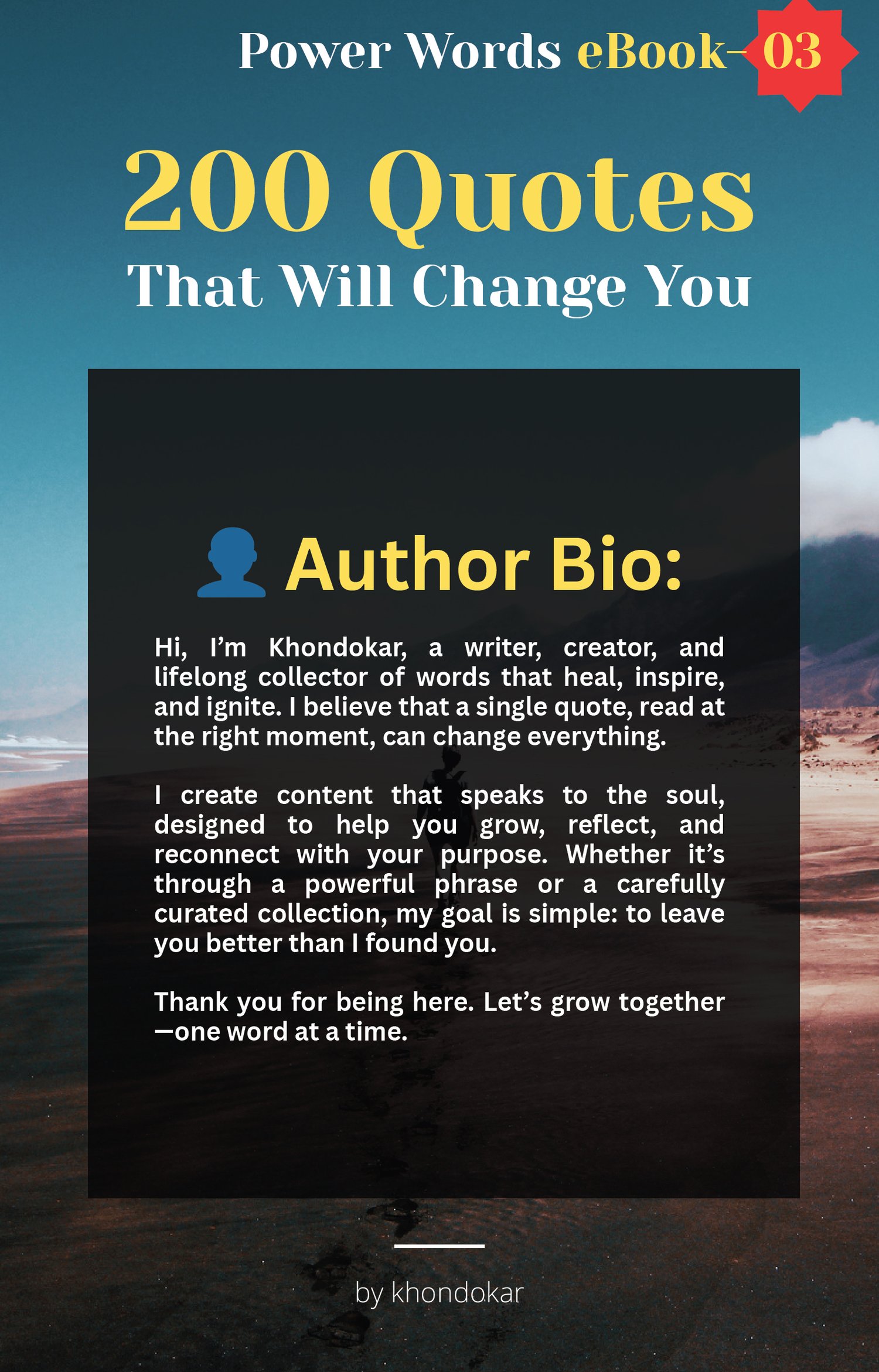"200 Sparks: Quotes That Will Change You" is more than just a book—it's a journey of transformation, one quote at a time. Inside this carefully curated collection, you'll find a thousand powerful words of wisdom, drawn from timeless thinkers, modern voices, and original insights designed to awaken your soul, shift your perspective, and ignite your inner fire.