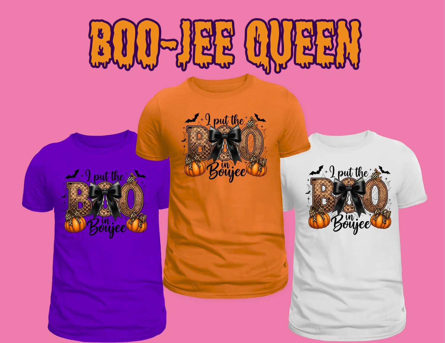 ✨ Rule spooky season in style with our “Boo-Jee Queen” shirt! A perfect mix of glam and ghoul, this festive tee is made for queens who love Halloween with a little sparkle and attitude. Whether you’re hitting a haunted party or rocking everyday fall fashion, this shirt brings the boo-jee vibes all season long.