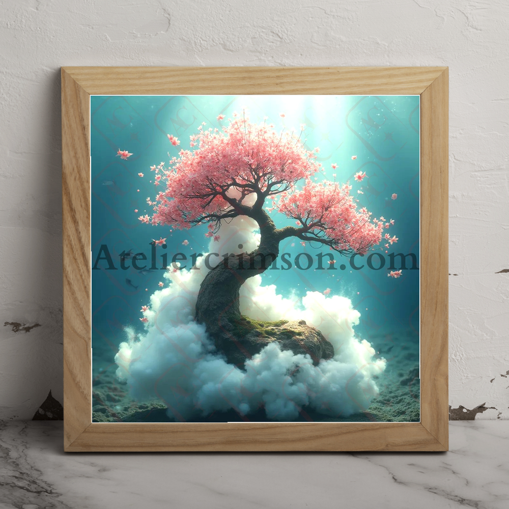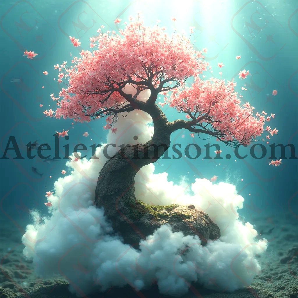 The letter L bonzai aquamarin cloud a captivating digital painting with a serene underwater bonsai. Download Now this high quality AI-generated image, perfect for adding a touch of tranquility and creativity to any space.