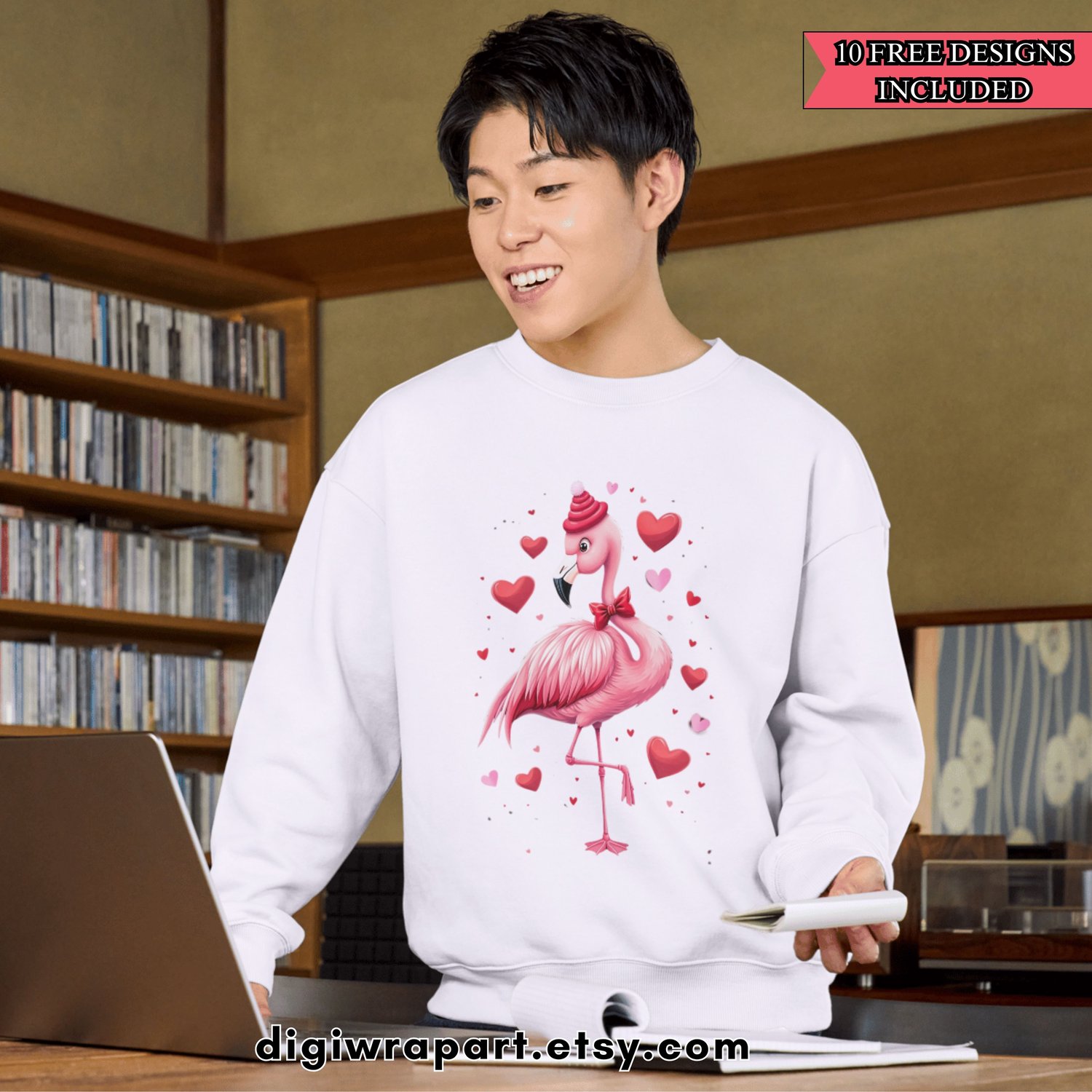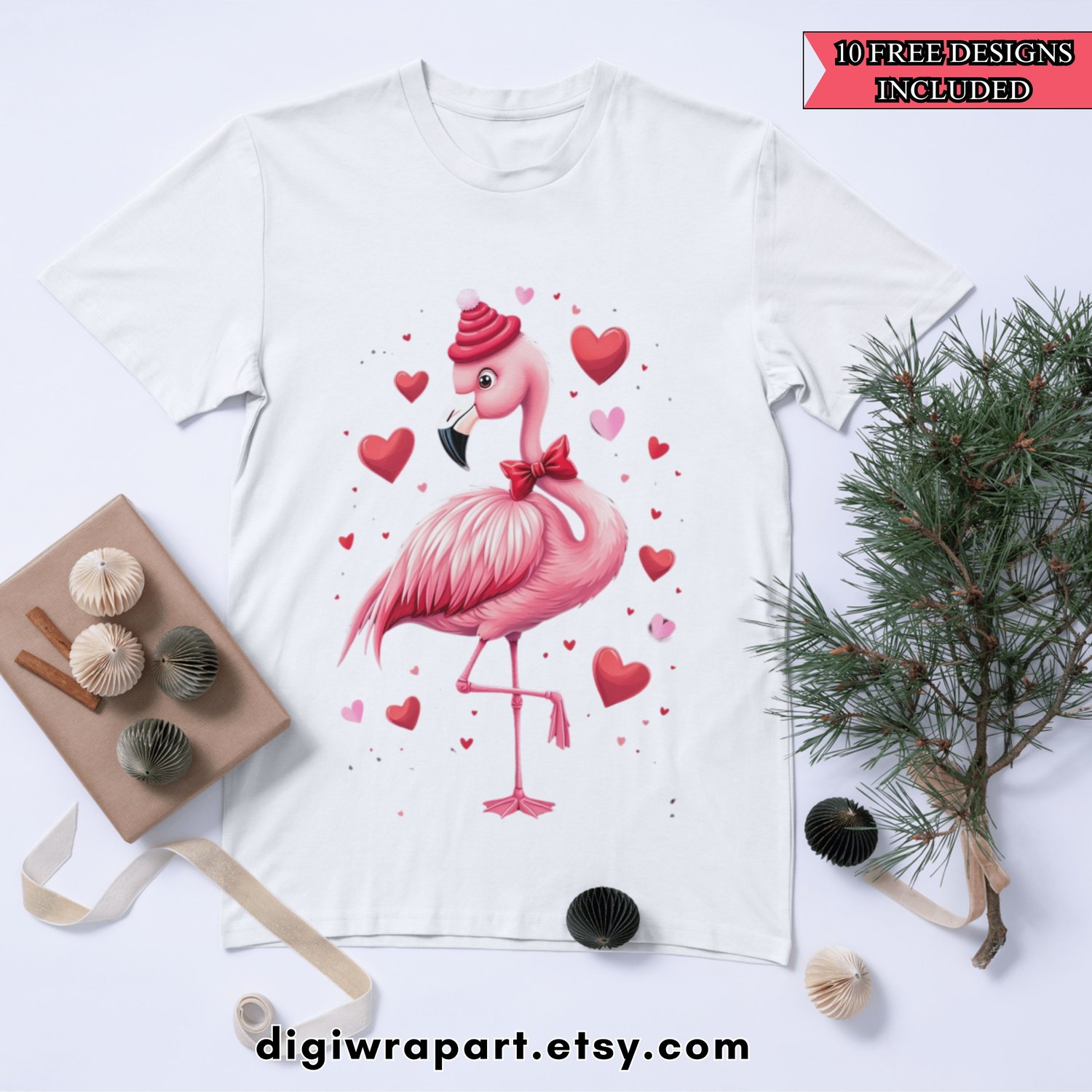 Whether you’re making custom t-shirts, mugs, tote bags, or Valentine’s Day cards, this high-quality PNG file will add a touch of whimsy and warmth to your projects. It’s an ideal pick for flamingo lovers, festive creators, and anyone looking to make heartfelt gifts.