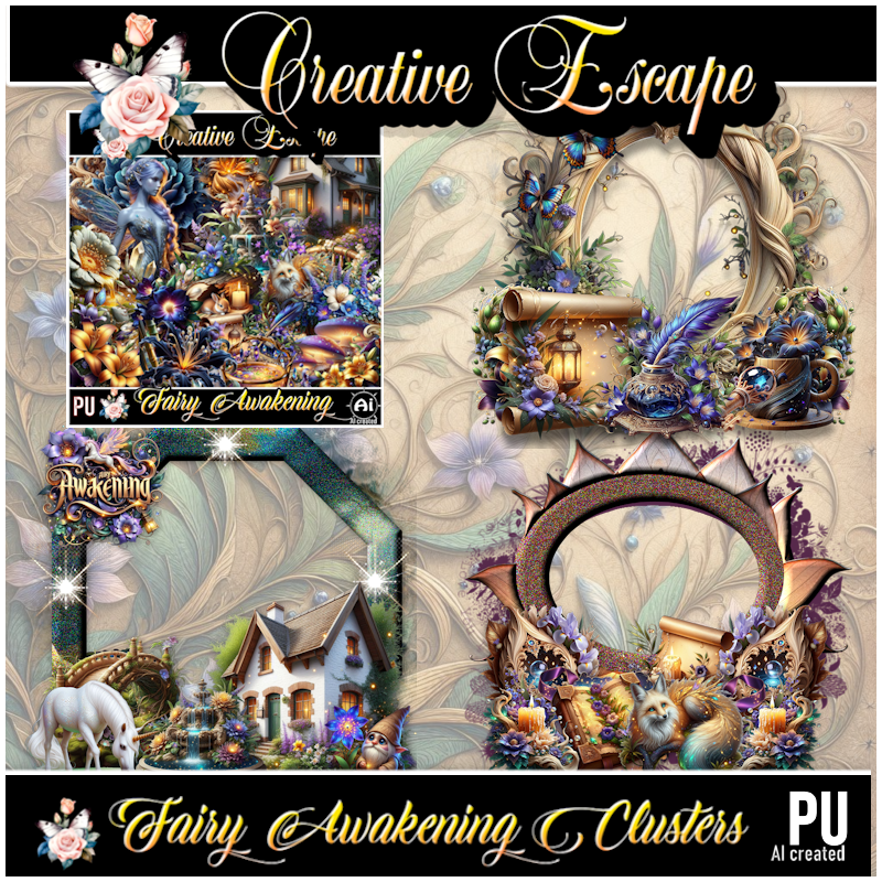 3 Clusters frames made with Fairy Awakening kit PU