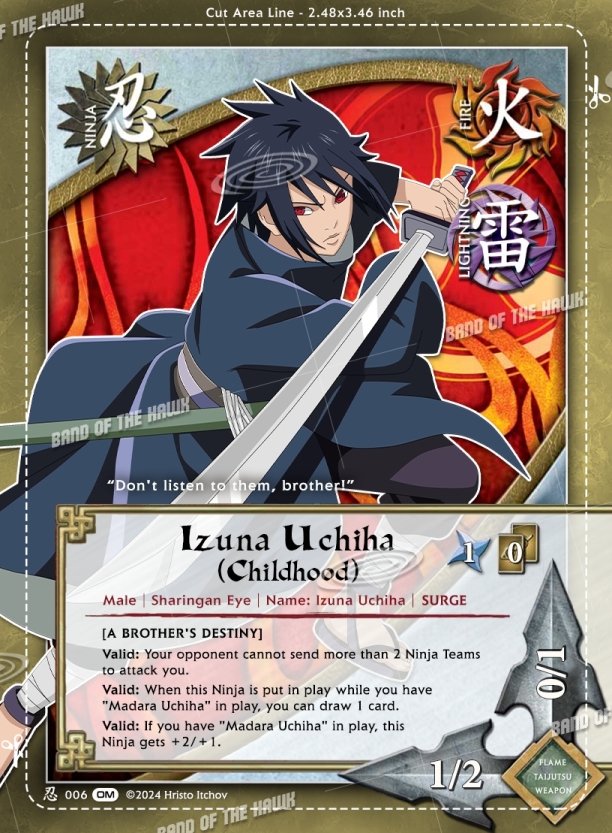 n006 - Izuna Uchiha (Childhood) Ninja card from our Obito & Madara card set for Naruto CCG.