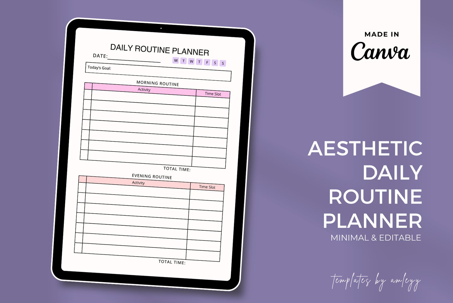 Aesthetic Daily Routine Planner Template | Minimal & Stylish Daily Organizer for Canva | Digital & Printable