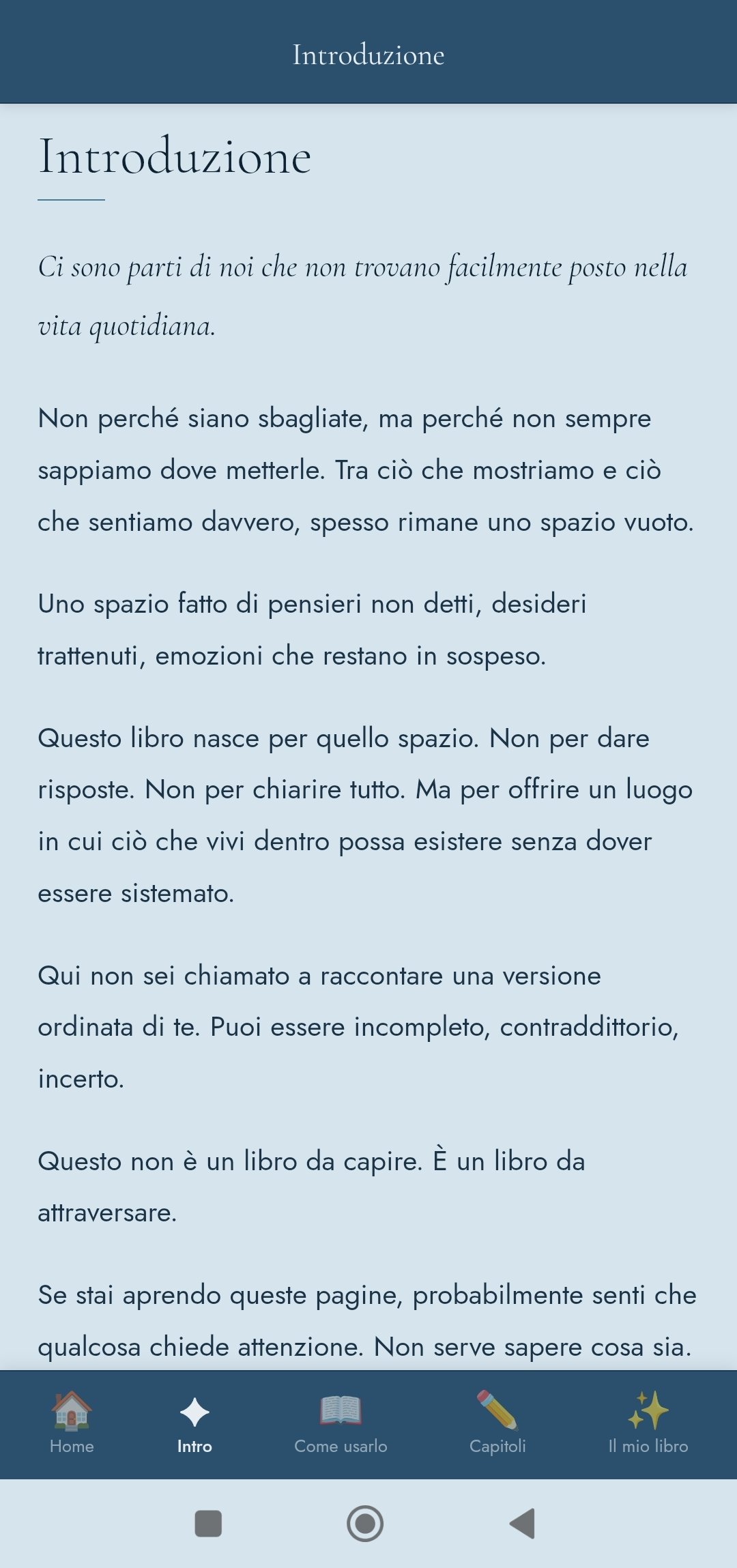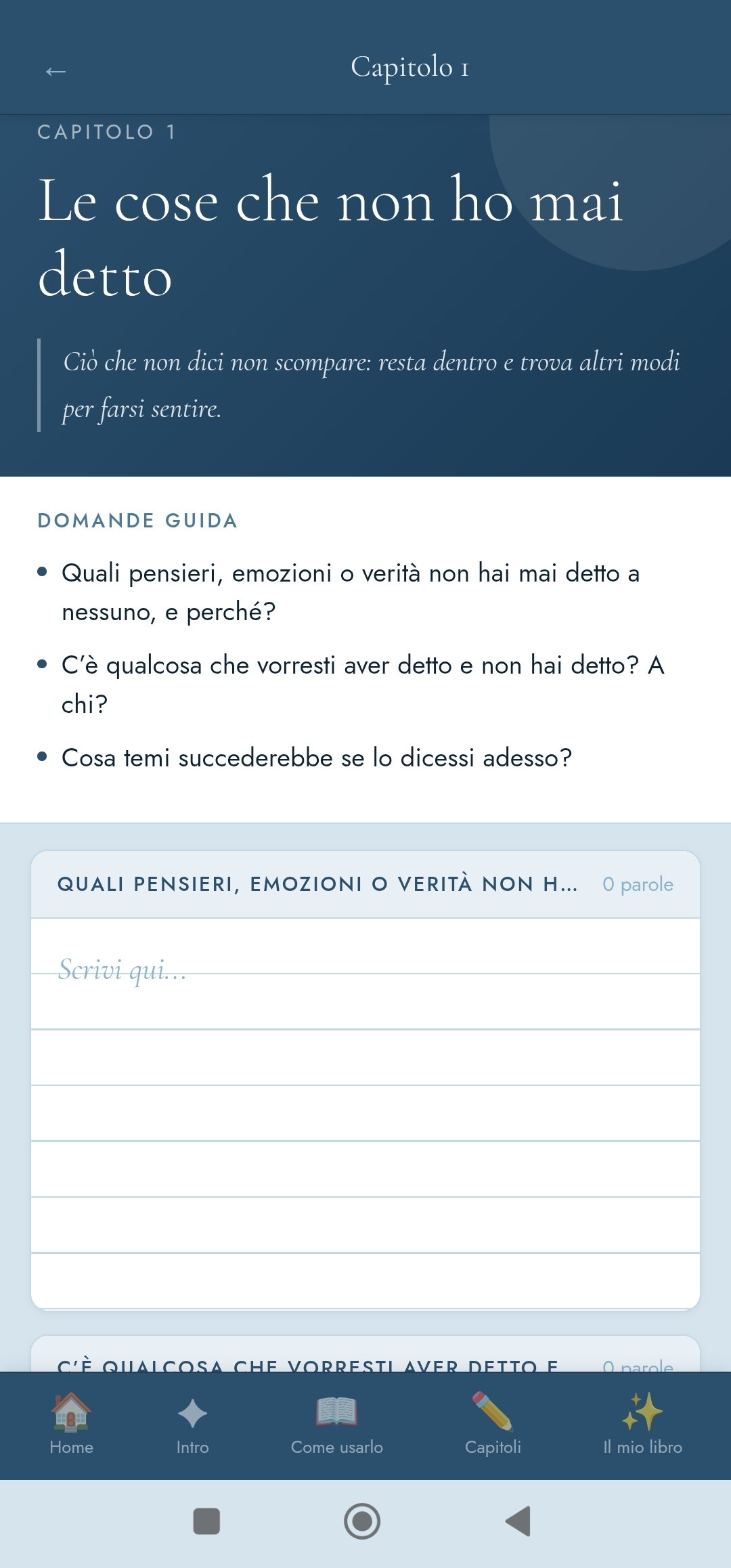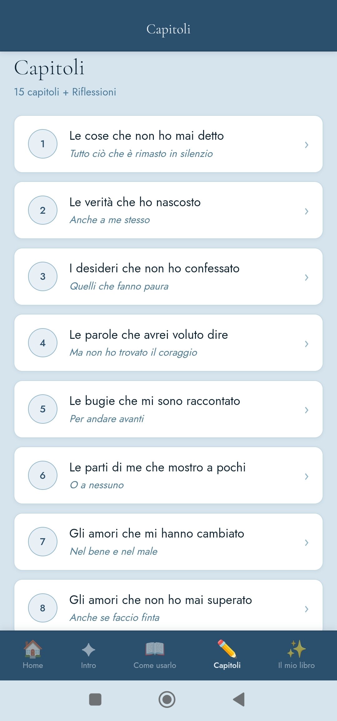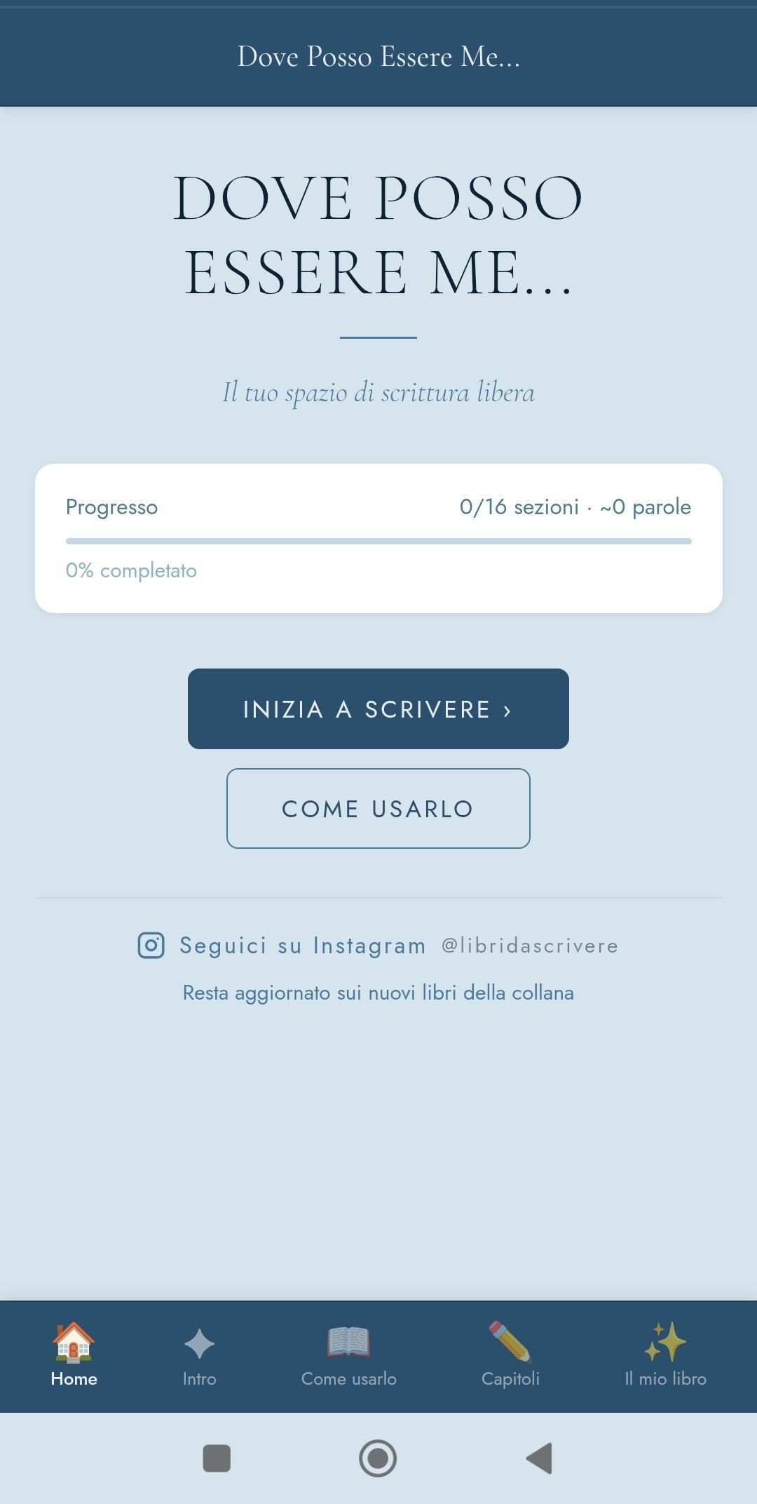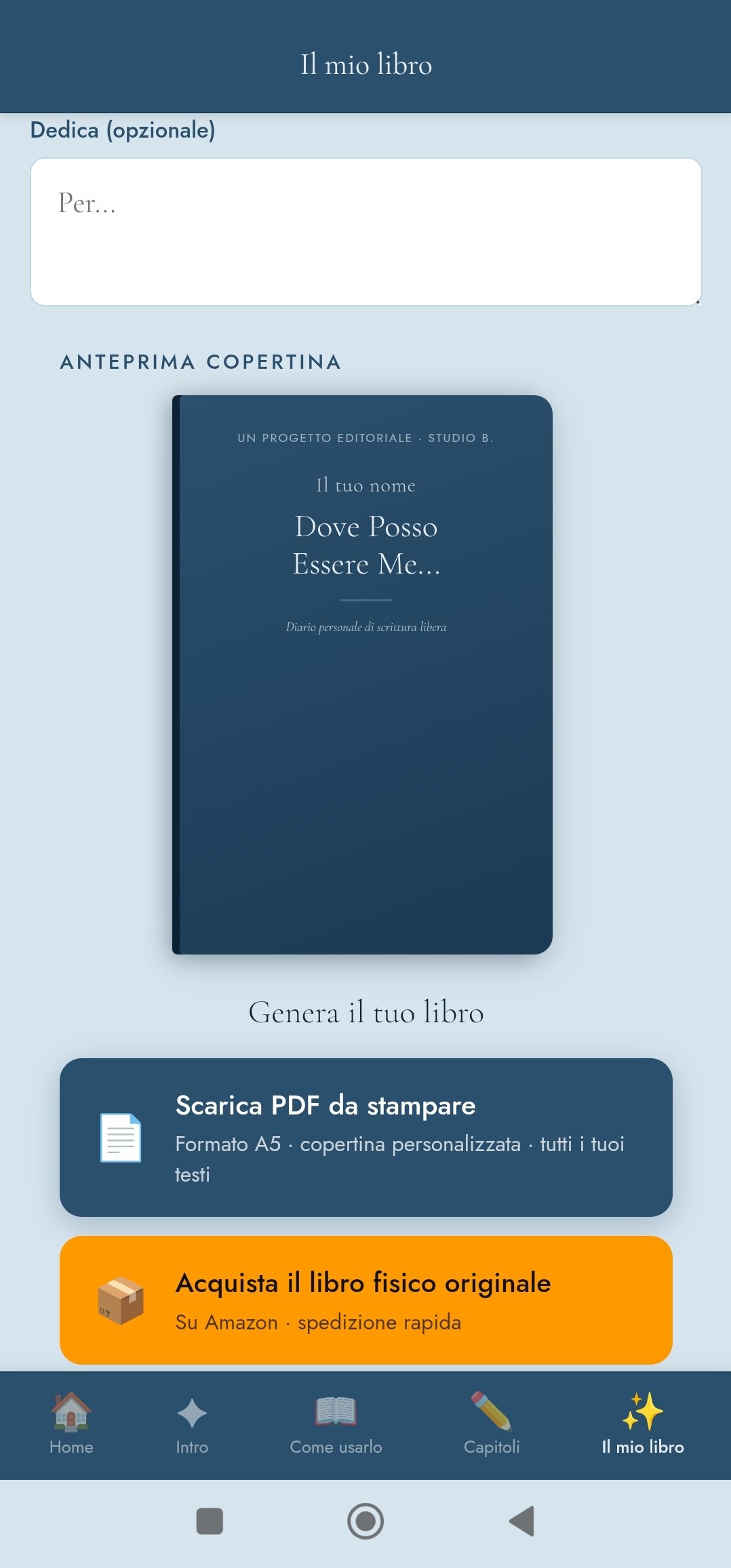 Dove Posso Essere Me... è uno spazio di scrittura libera in 15 capitoli dedicati alle verità nascoste, ai desideri non confessati, agli amori che ci hanno cambiato e a ciò che oggi sei pronto a dire.