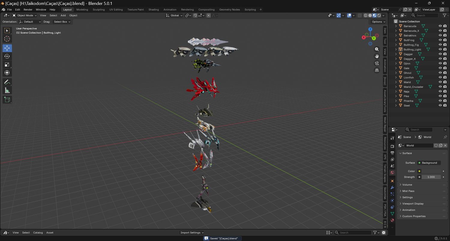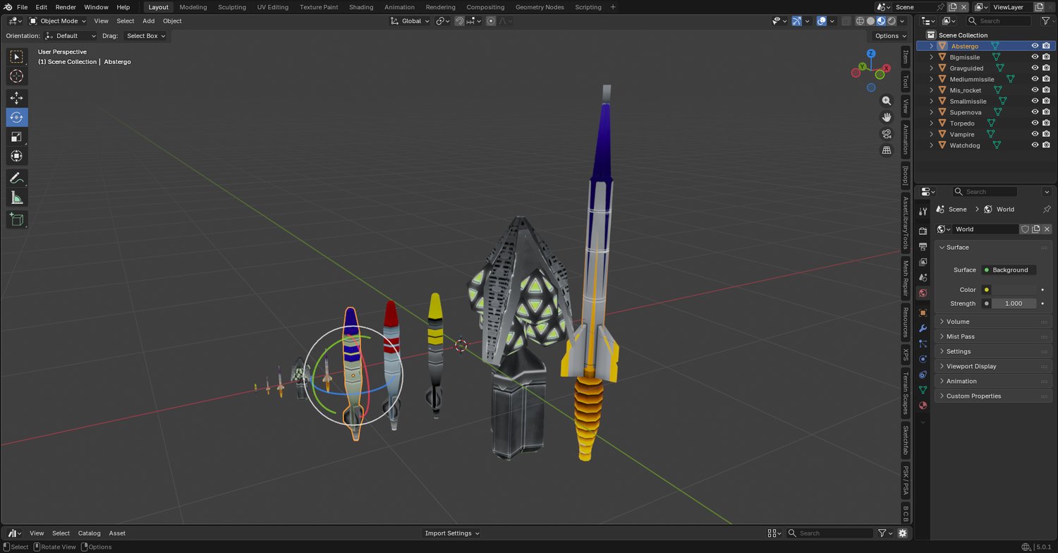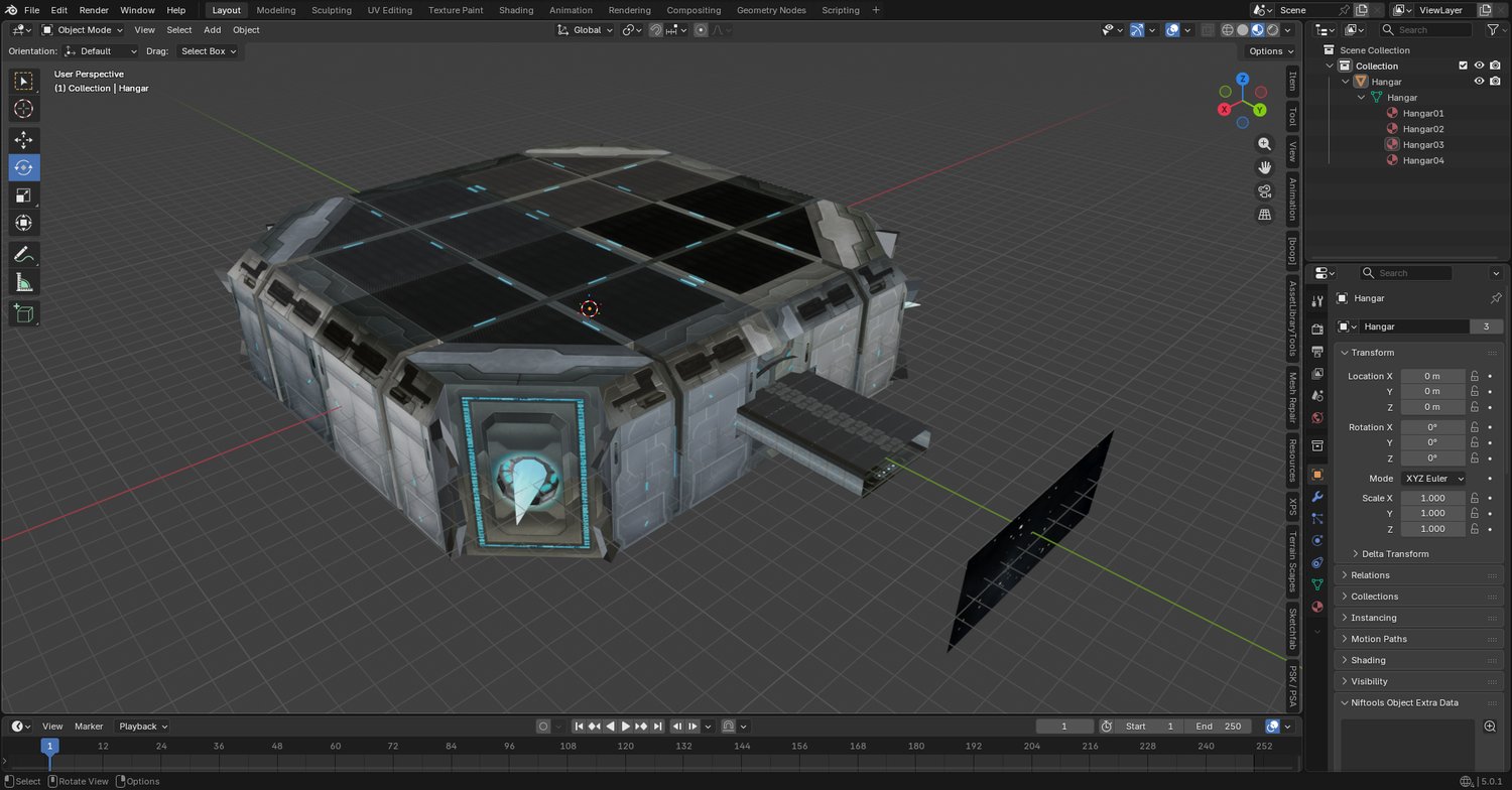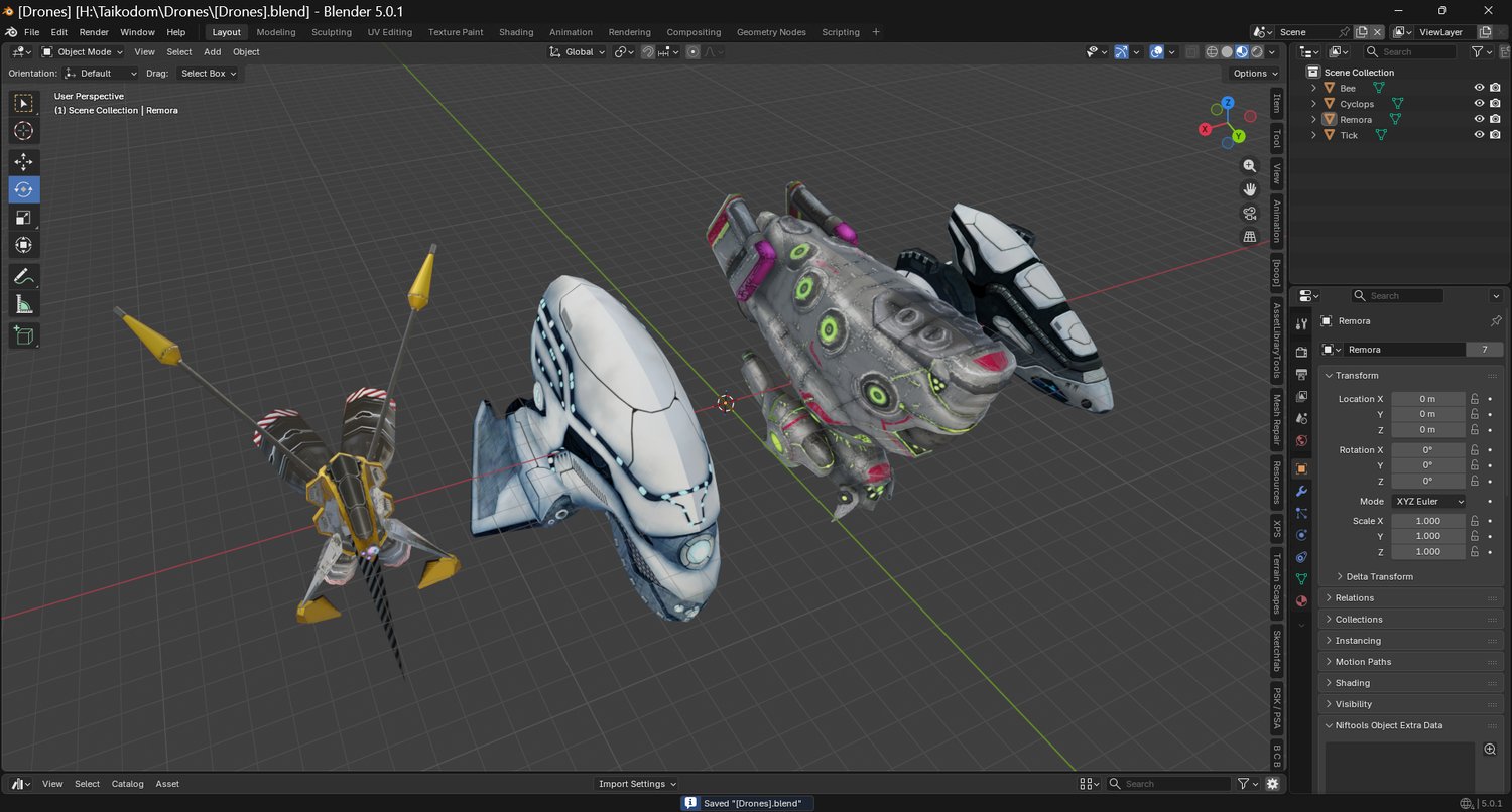 Pack de assets 3D de naves espaciais sci-fi, convertidos e adaptados para uso em renders, cenas e animações no Blender.