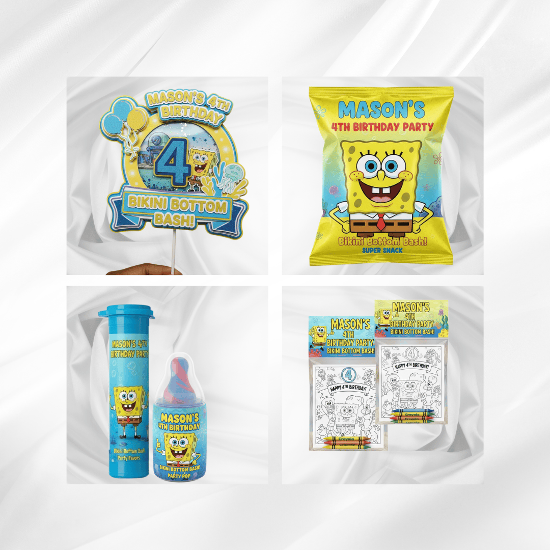 Every detail is custom-designed with high-quality prints, glossy finishes, and optional treat-filled packaging to match your theme perfectly.