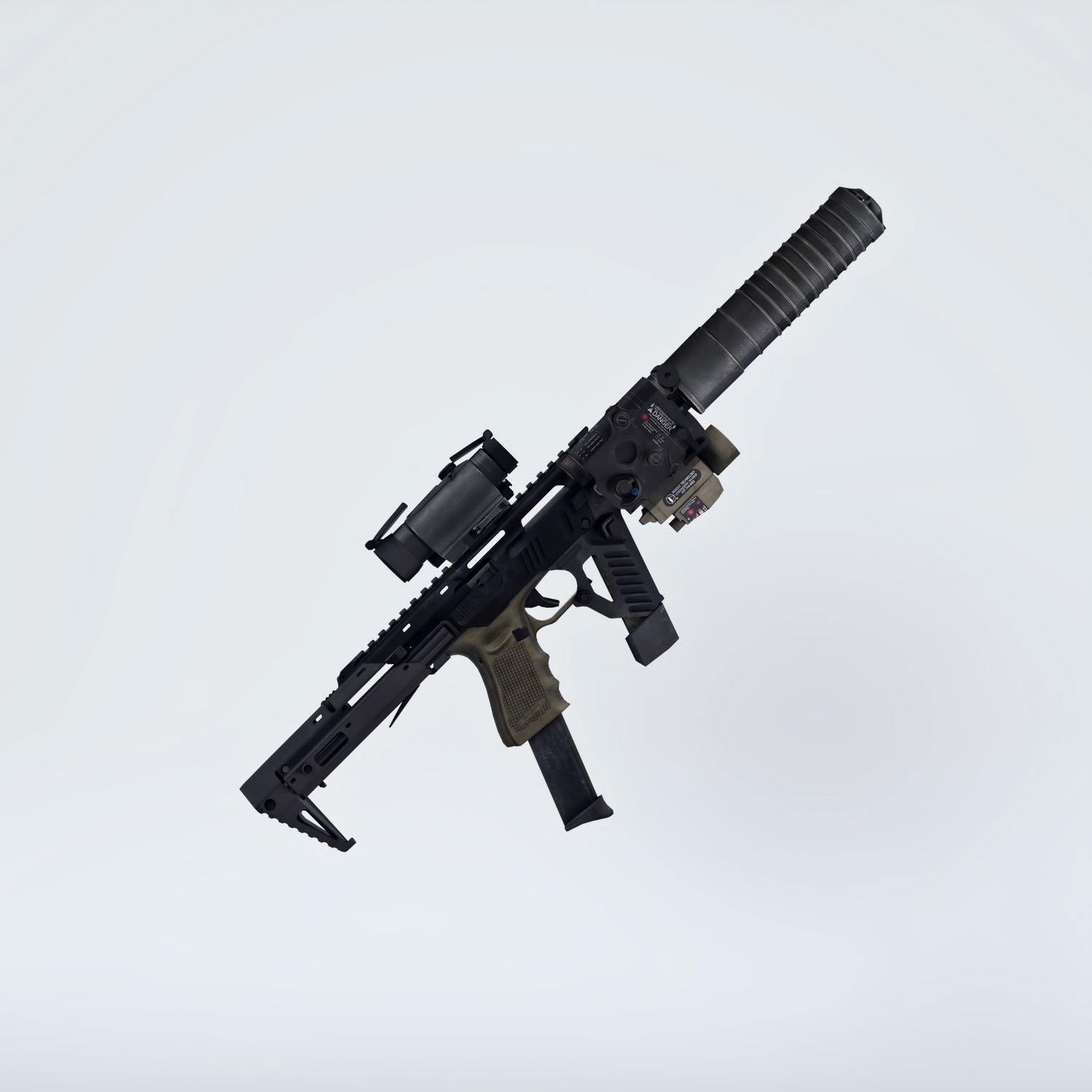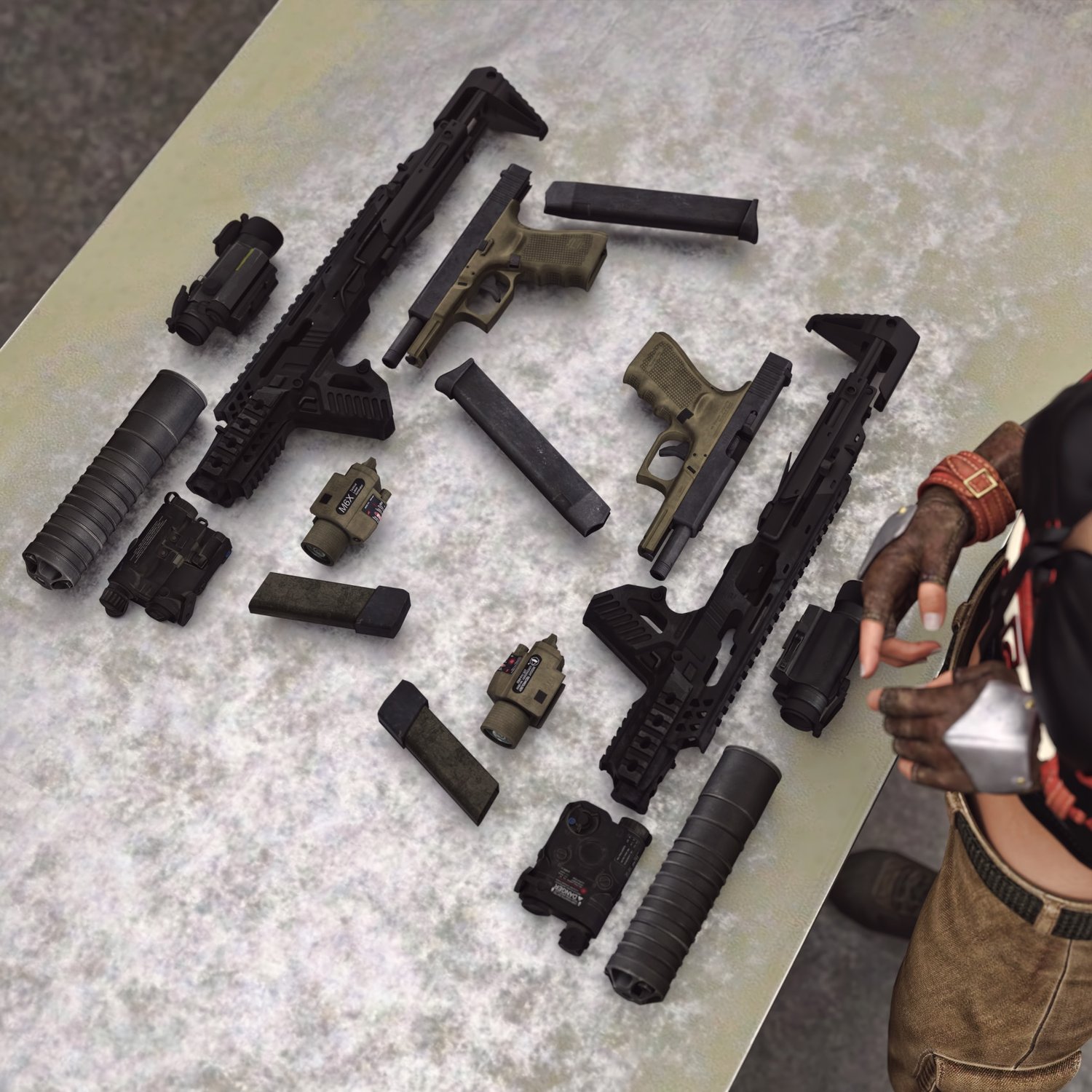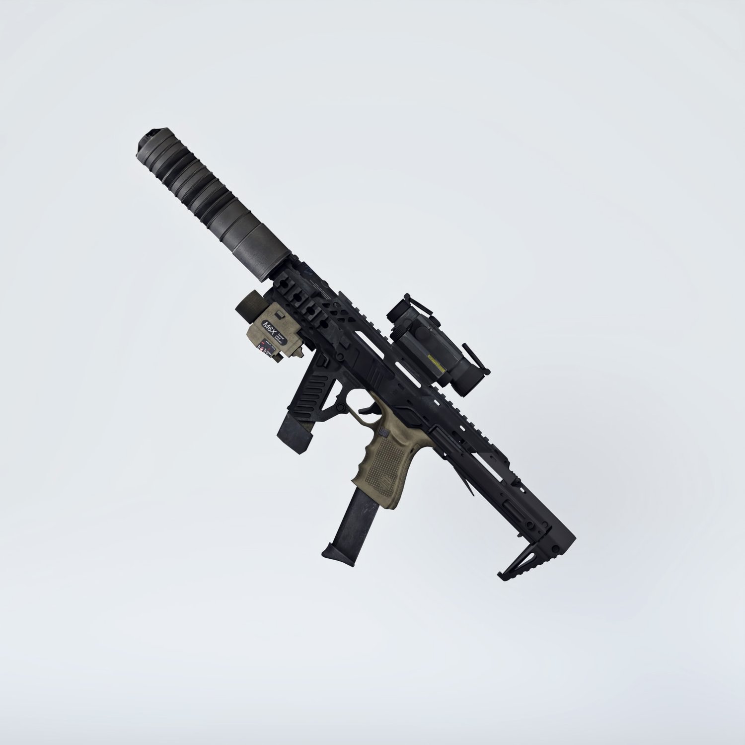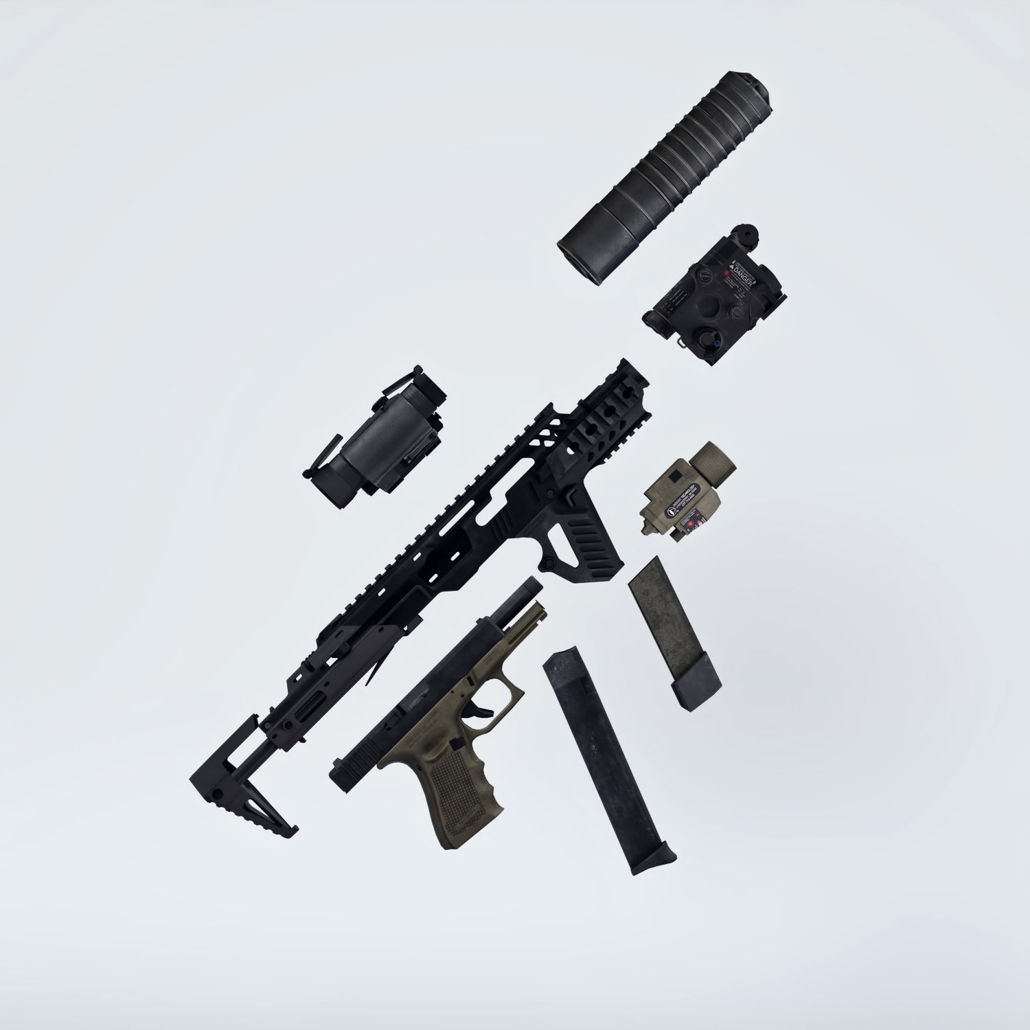 When you need a more stable platform for your pistol. Longer platform includes a stock to helps to mitigate the recoil, longer mag for more fire power and a spare mag. Also include a red dot scope, a silencer, a laser and a flashlight, all of which can be hidden if needed. Converted and rigged for use in Daz, so you can make more realistic pictures, with moving slide, pulled trigger etc. The prop comes with a G17 pistol, but it can be hidden and you can use the extender on any other gun you have, just parent it and adjust appropriately.