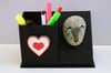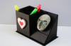 It is then glued on a black box with a leather like surface that serves as a Pen Holder.