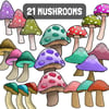 And 21 Mushroom clipart (7 designs, in 3 colors each)