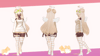 - Comfy Sweater, Ribbon Top, Bikini Top, Sweater Without Bikini Bra, Cardigan, Shorts, Denim Skirt, Bikini Bottoms, Socks, Socks Balls (Ears), Bow Heels, Slippers, Barefoot