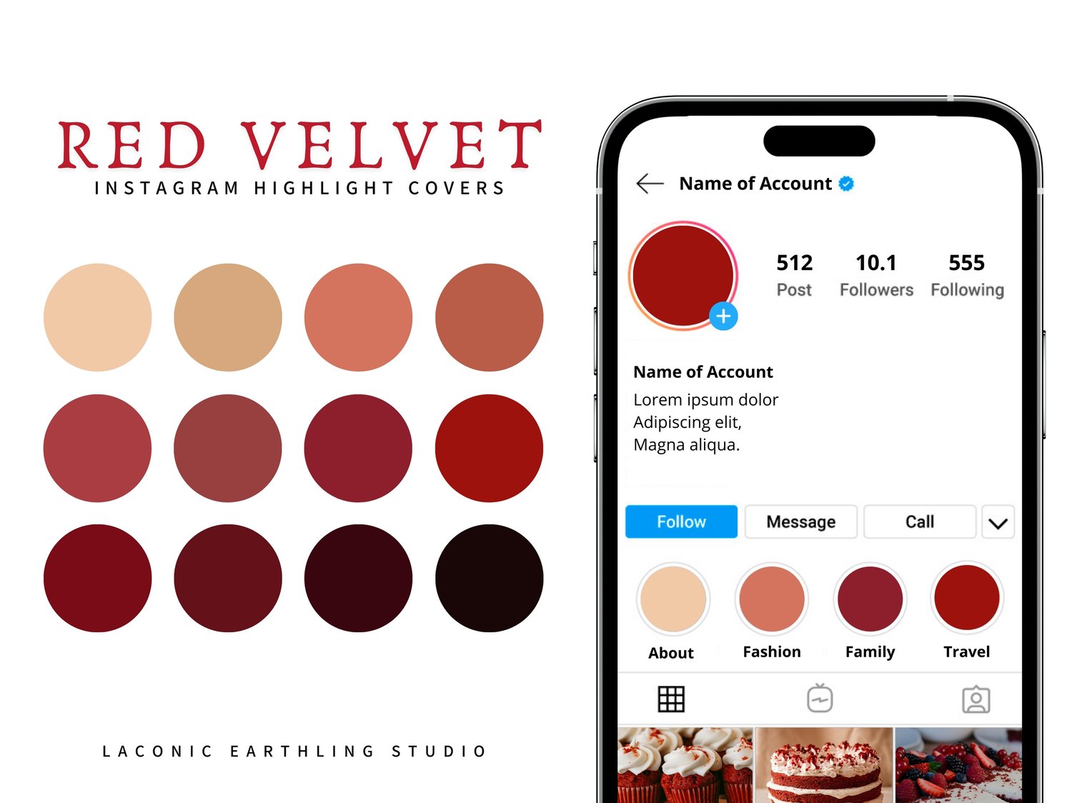 Social Media Instagram Red Velvet Highlight Covers | Neutral Story Instagram Highlights | Editable Canva Covers | Strawberry shortcake