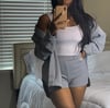 The jacket is oversized and the shorts has small stretch.