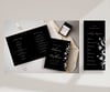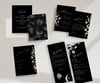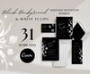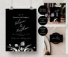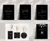 Feeling overwhelmed? Start with our Elegant Script Wedding Stationery + Reception Bundle! Featuring an elegant white tulips illustrations on a black background, this collection is perfect for the modern DIY bride.