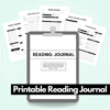 A PDF in U.S. Letter (8.5 x 11 inches) size containing the full printable reading journal in the Bare Blackline design.