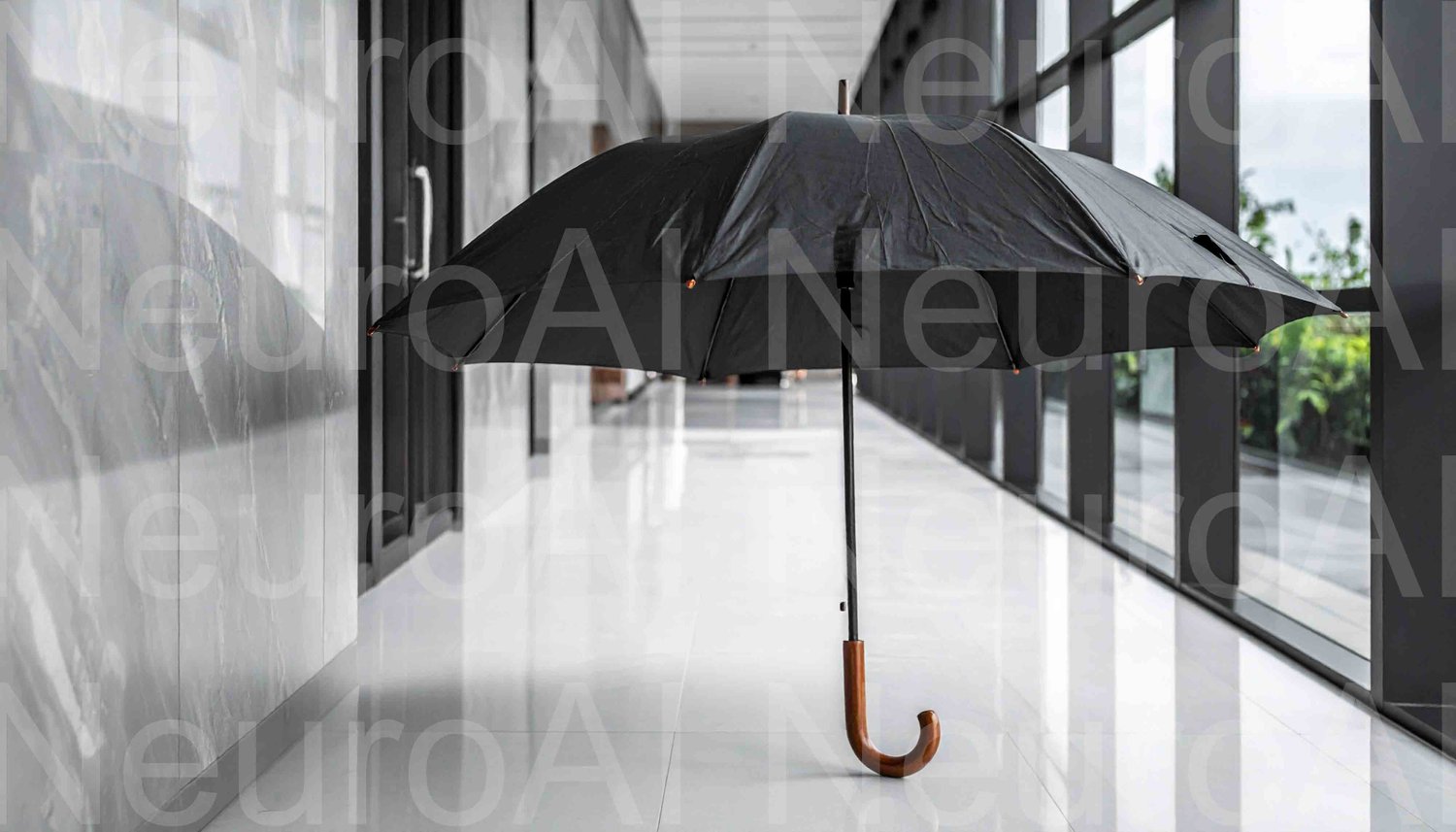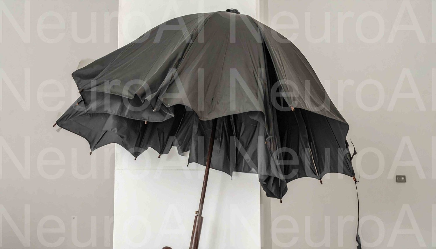 Dark umbrella indoors with a quirky style