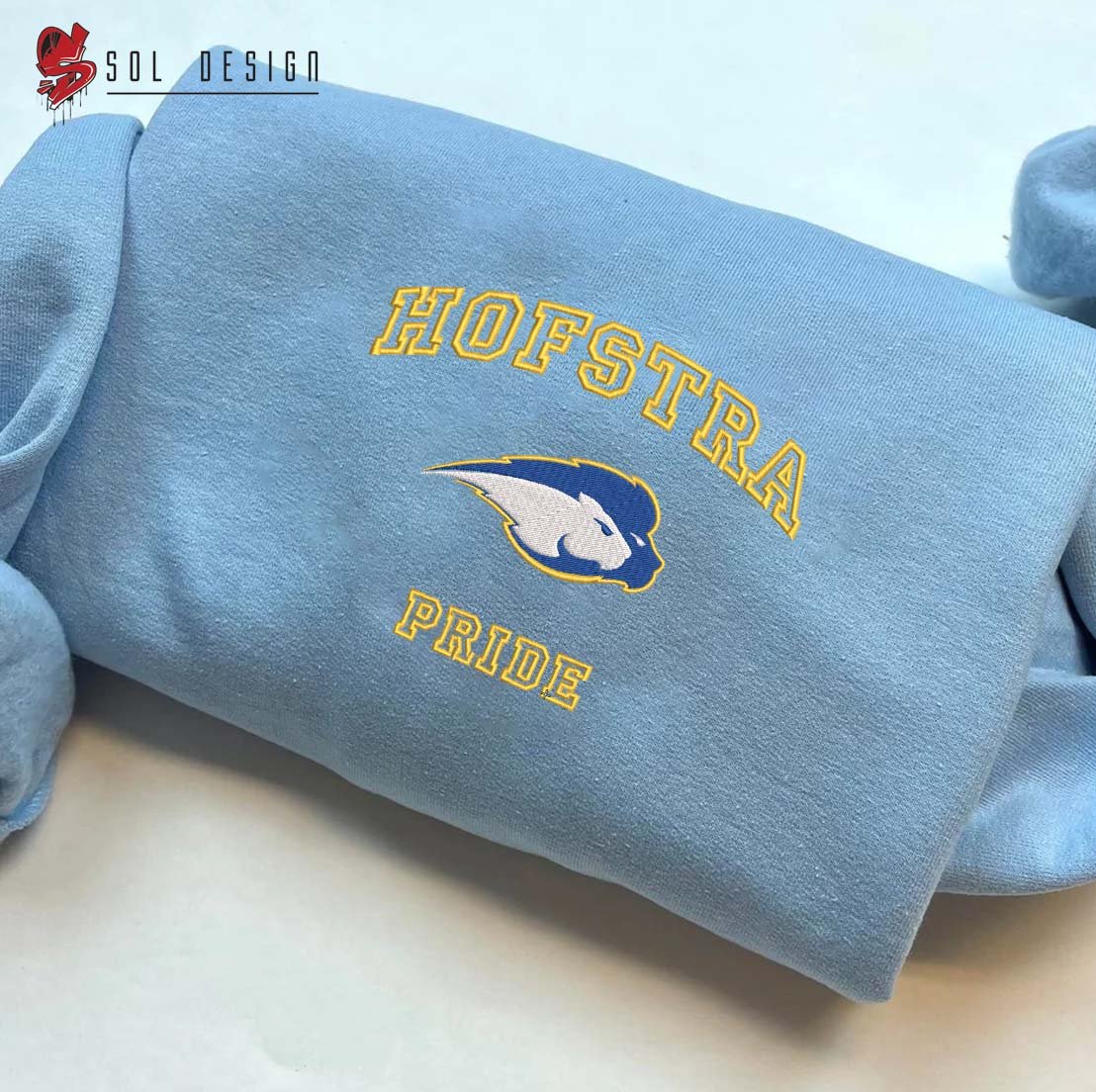 NCAA Hofstra Pride College Football Team Embroidered Crewneck, Hofstra Football Embroidered Sweatshirt, NCAA Hofstra Pride Team Sweatshirt, Game Day Embroidered Hoodie, T-shirt
