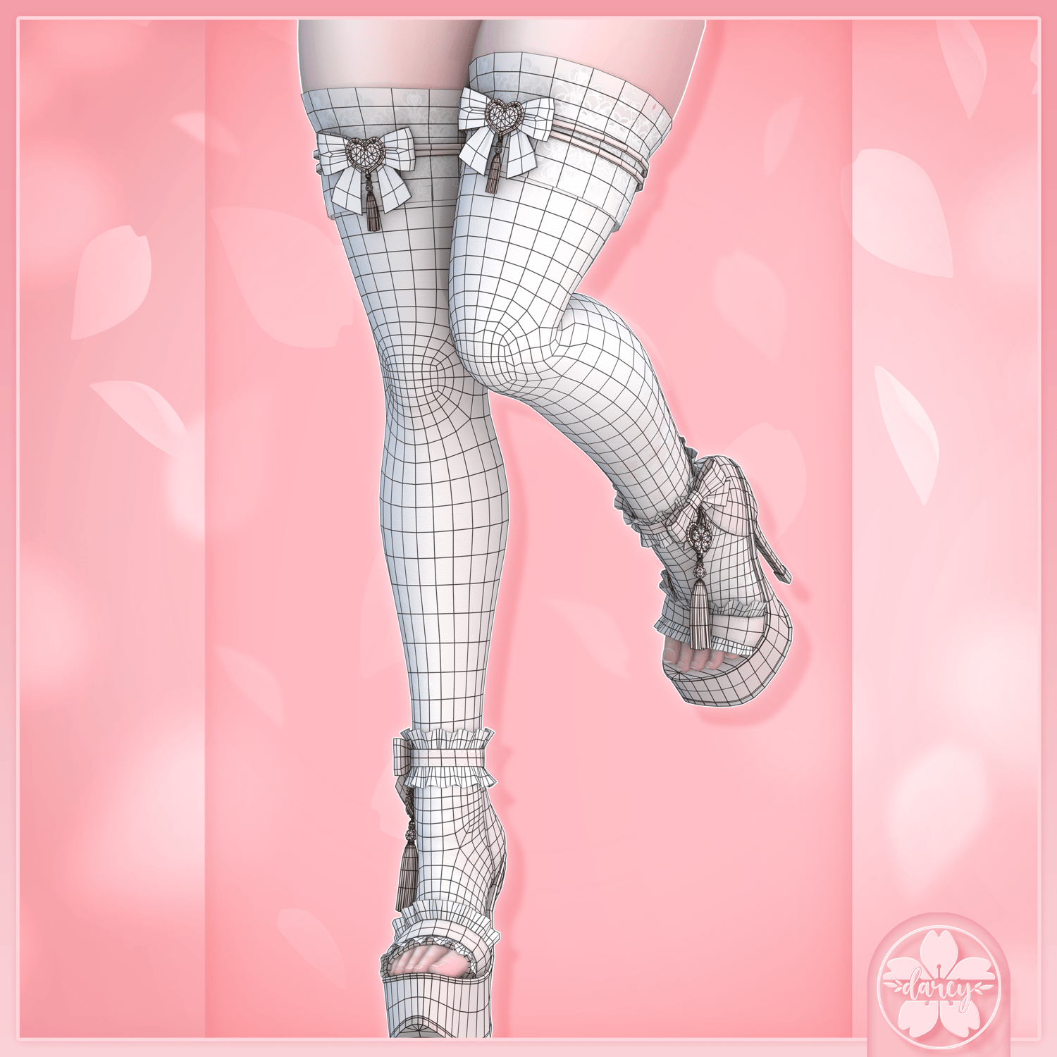 The socks are intentionally modelled to create a “squish” effect. Basic mesh editing knowledge is required before purchasing, as adjustments to the leg size will be necessary.