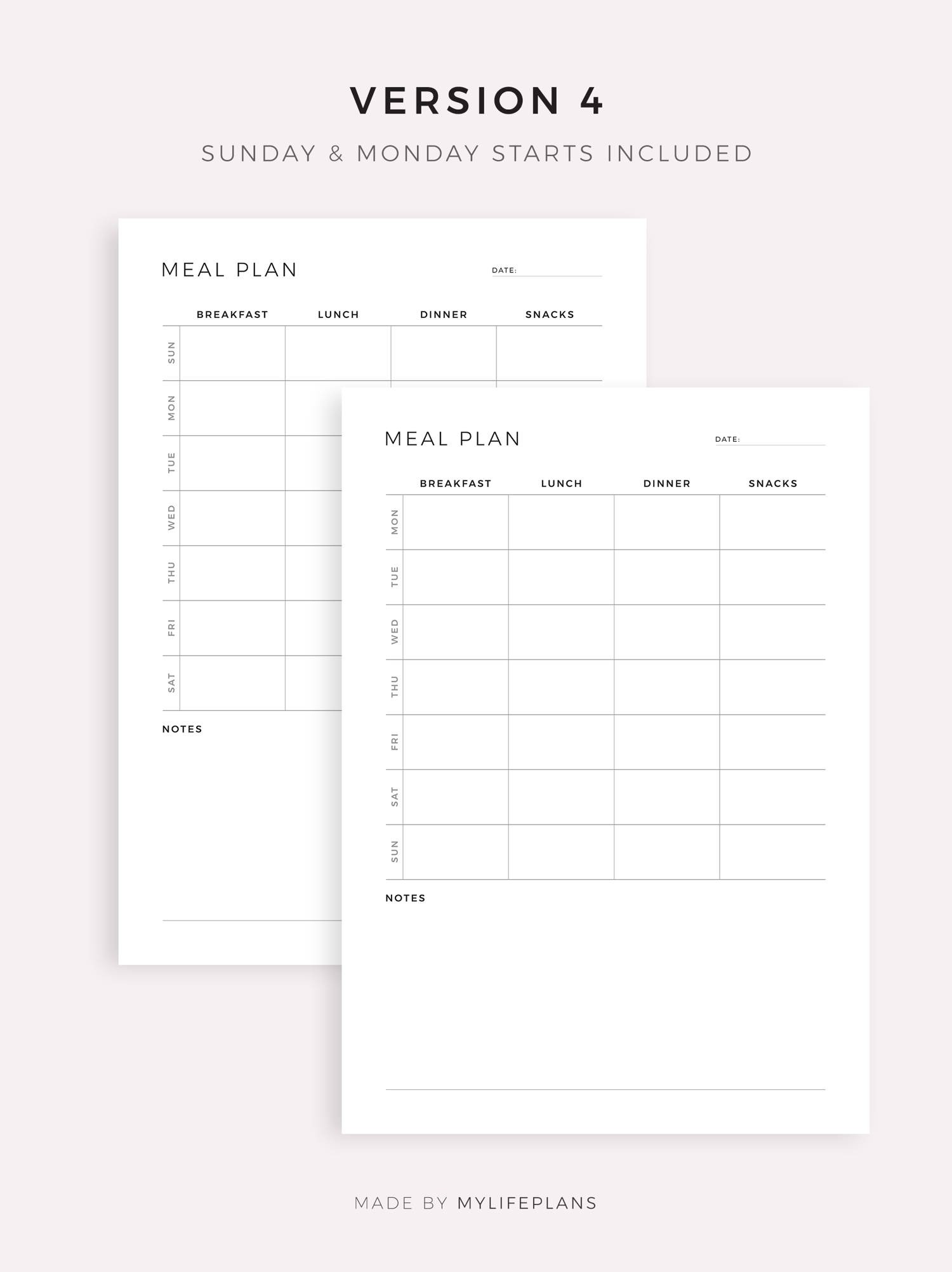 Weekly Meal Planning, Printable & Fillable Template, A4/Letter Size