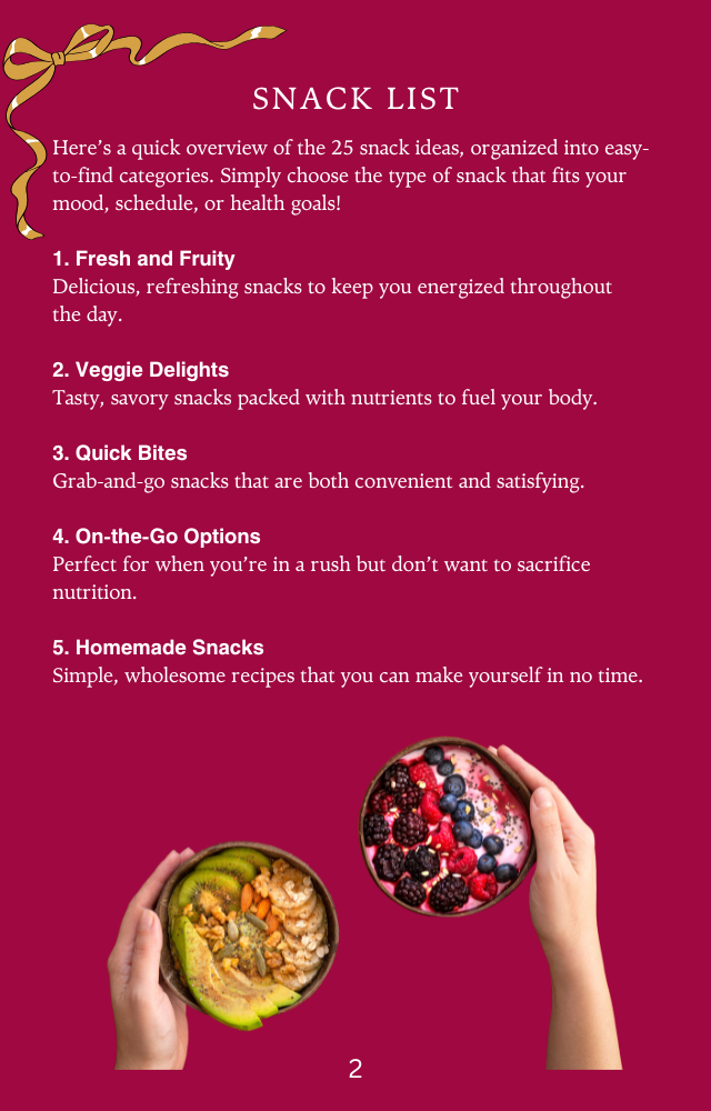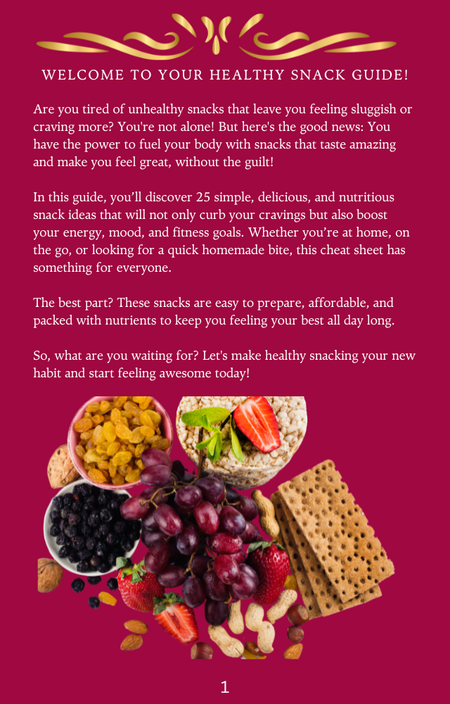 Looking for simple, tasty, and nutritious snack ideas? This guide is packed with 25 healthy snack recipes to keep you energized, satisfied, and on track with your health goals. Whether you're at home, on the go, or need a quick bite, there's something for everyone!