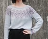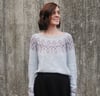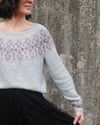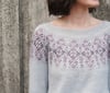 Ashmore features delicate colourwork inspired by the concentric pressed flower art by Jennie Ashmore. This design is the first in the Organic Collection, a series of colourwork designs that are inspired by shapes found in the natural world and by artists who explore and celebrate nature in their own work.