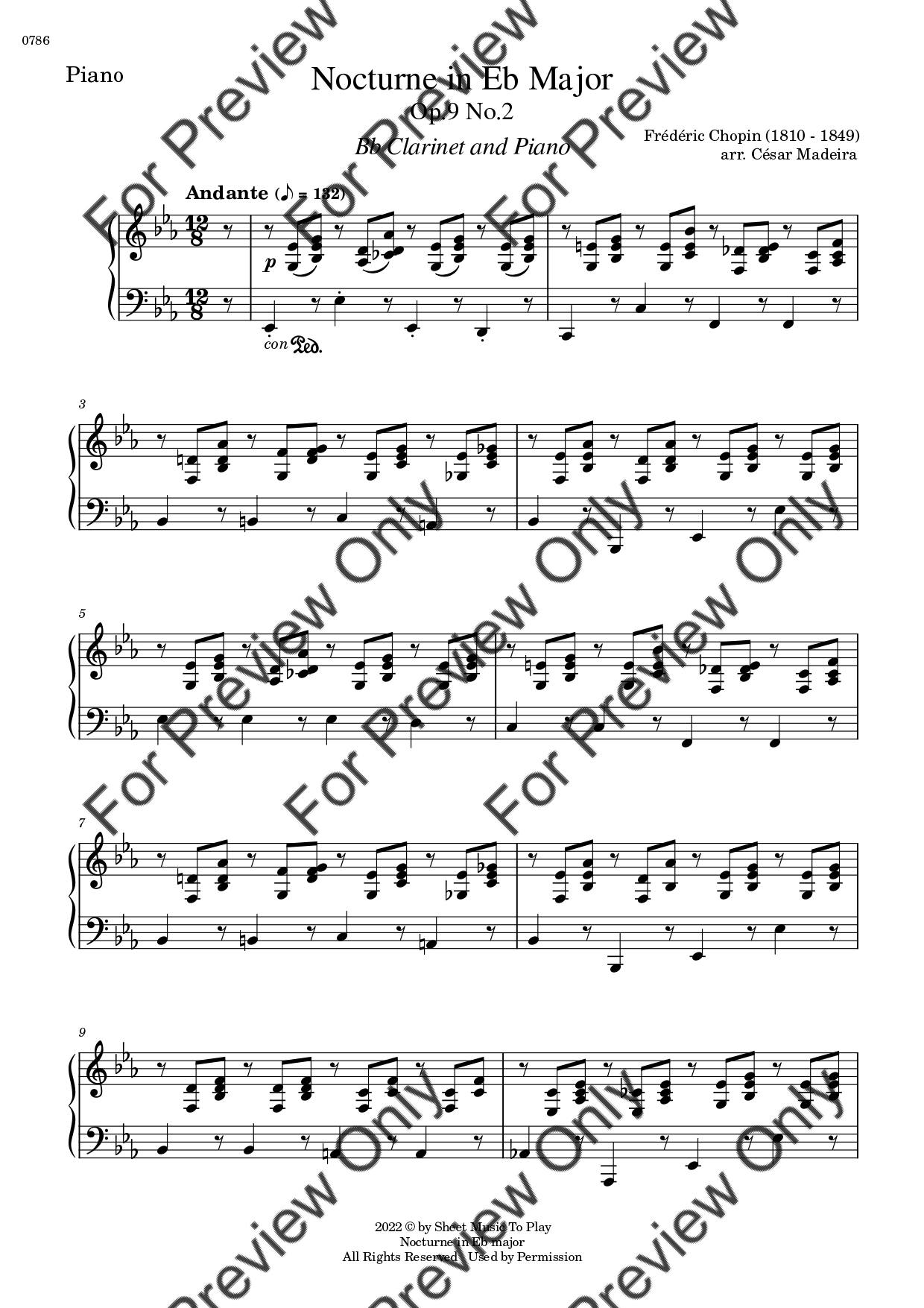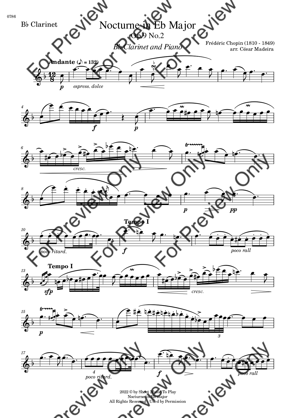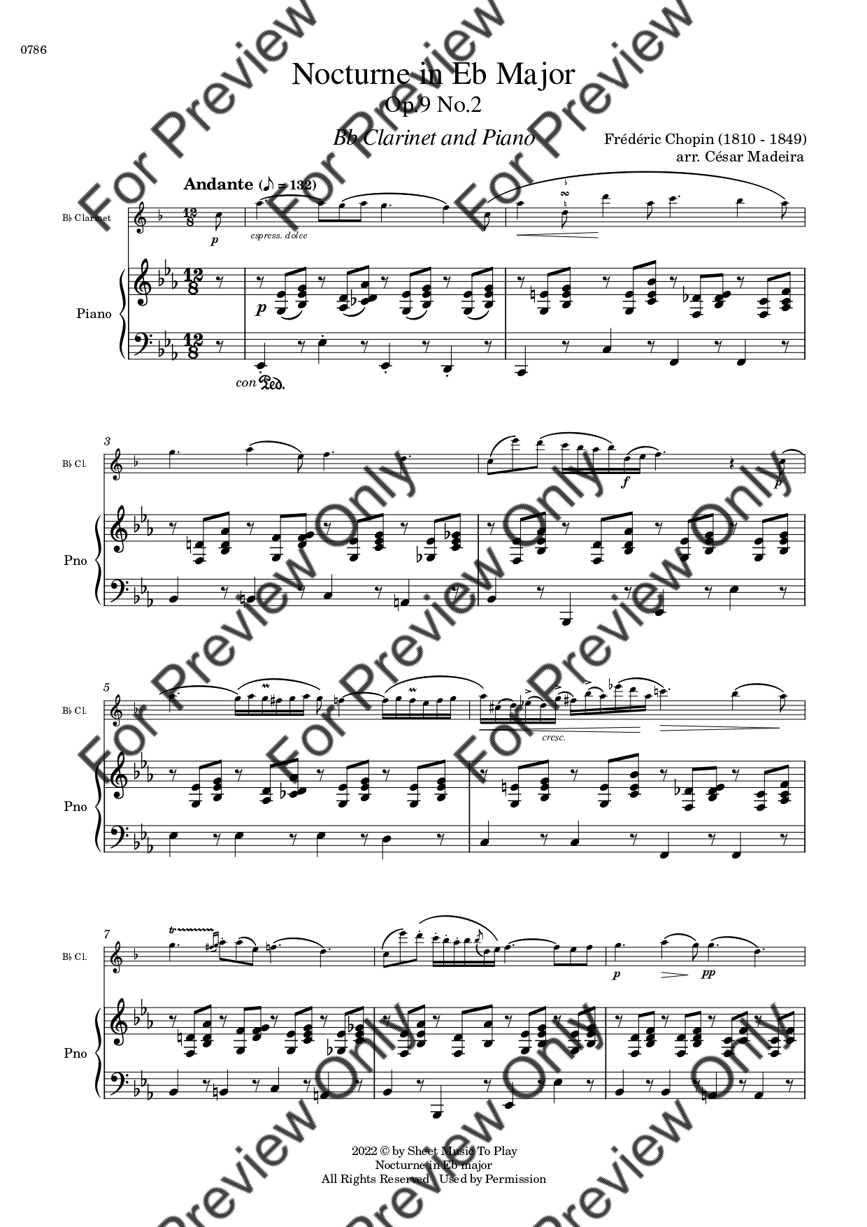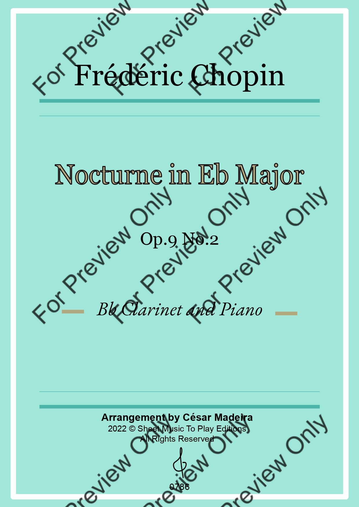 Nocturne Op.9 No.2 by Frederic Chopin. Arrangement for Bb Clarinet and Piano. With Full Score and Individual Parts. Have fun!