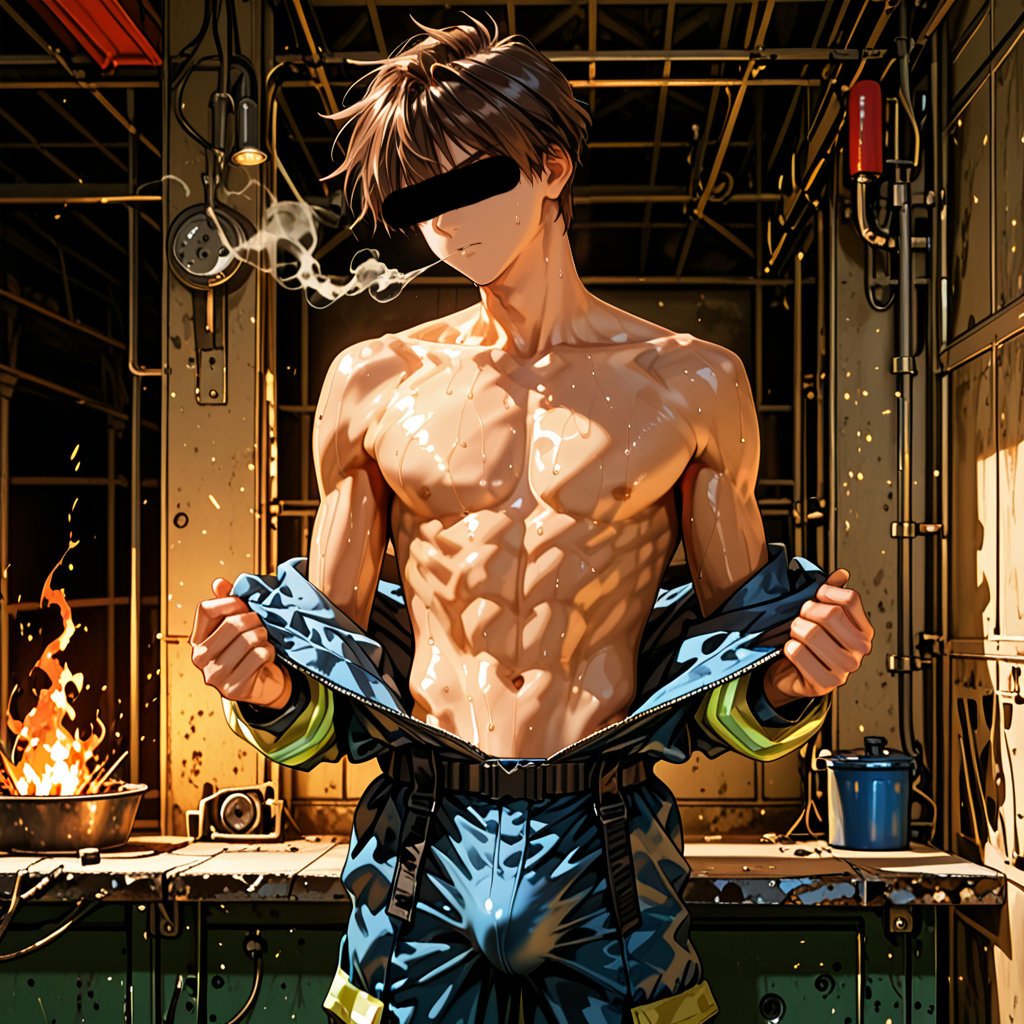 The theme is ""work scenes"" of firefighters, and the charm of the masculine characters of the firefighters is boldly expressed.