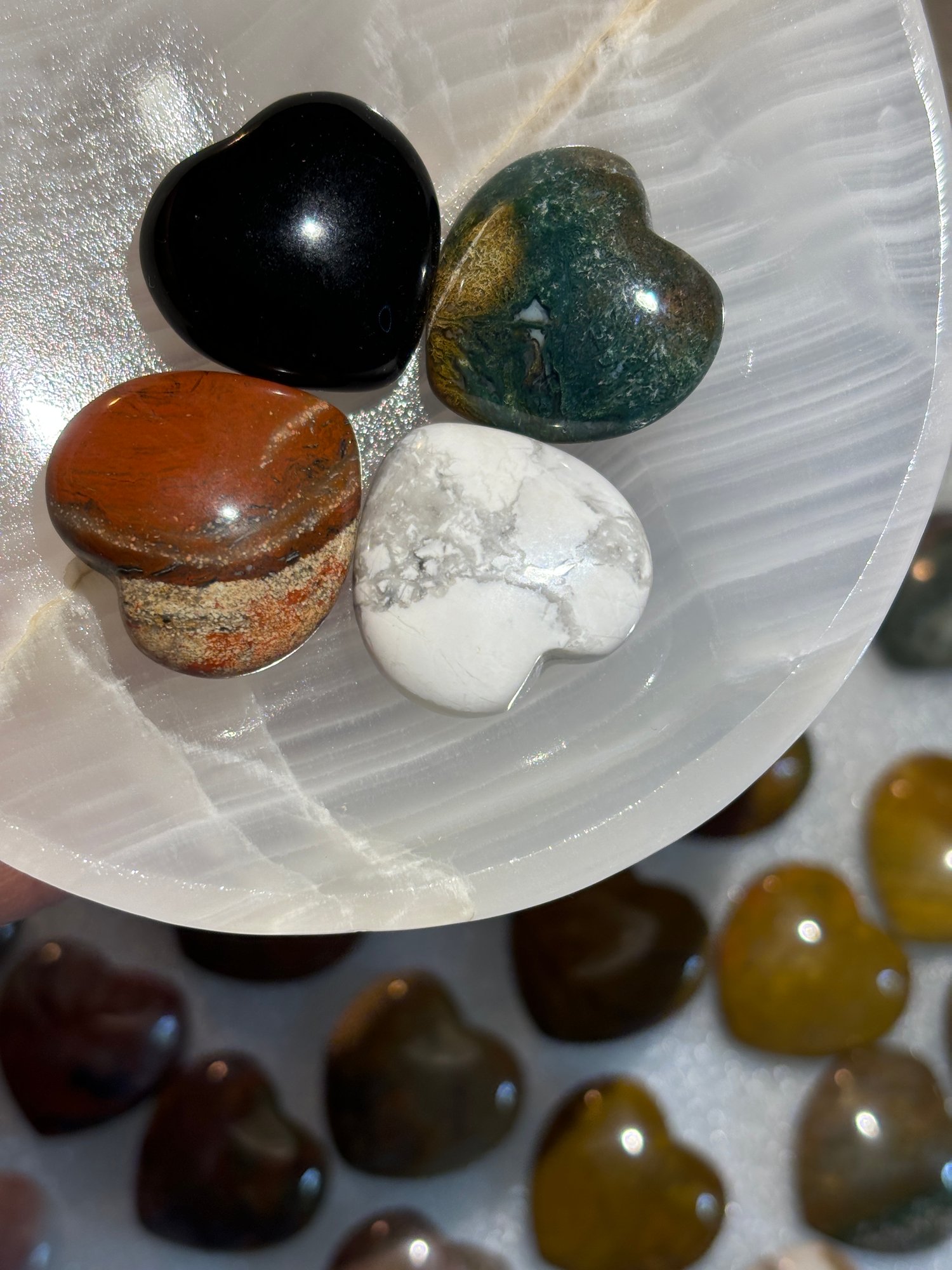 This set includes four pocket hearts, corresponding description cards, and an intention card. This beautiful set comes in a travel pouch.
