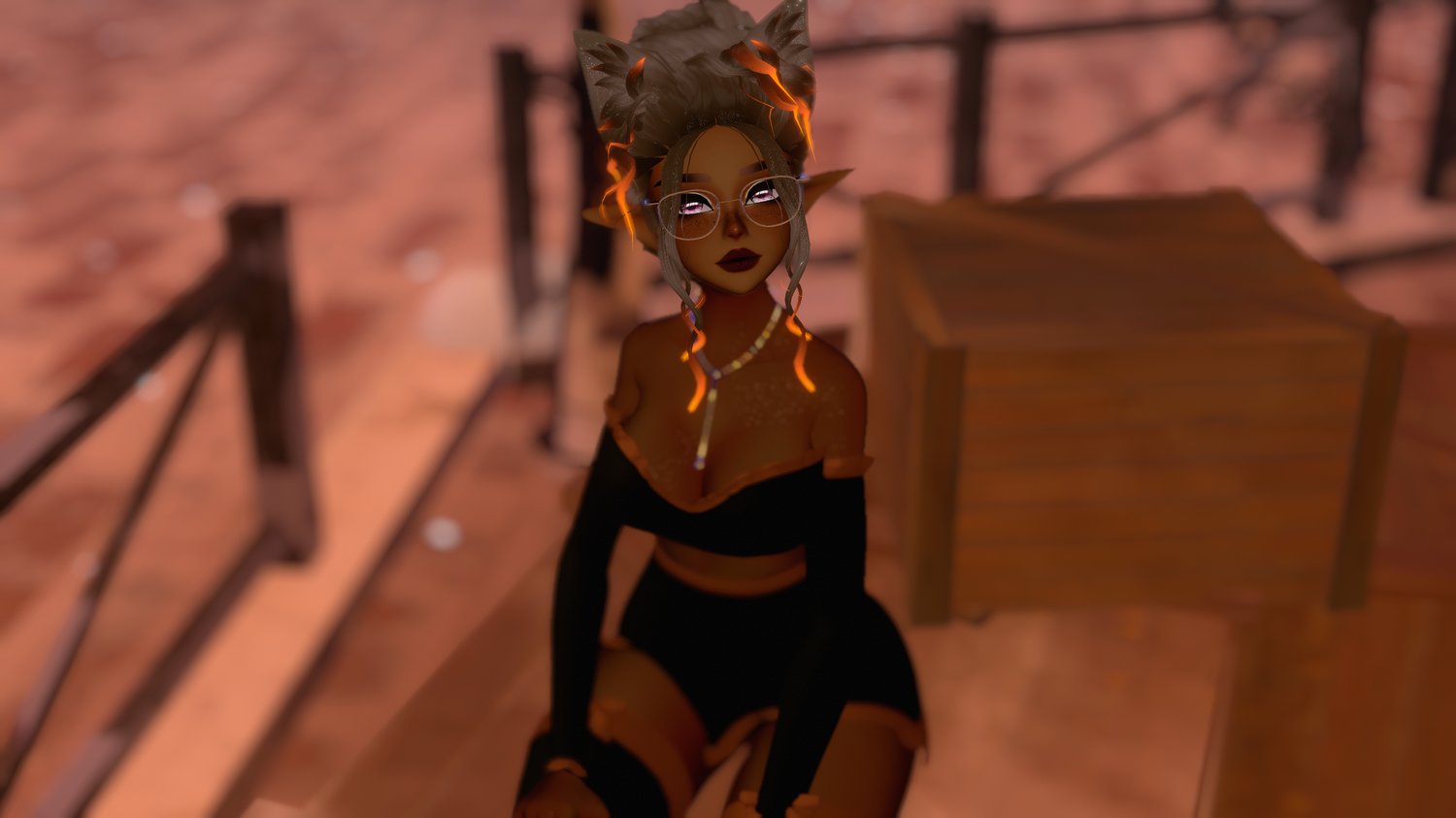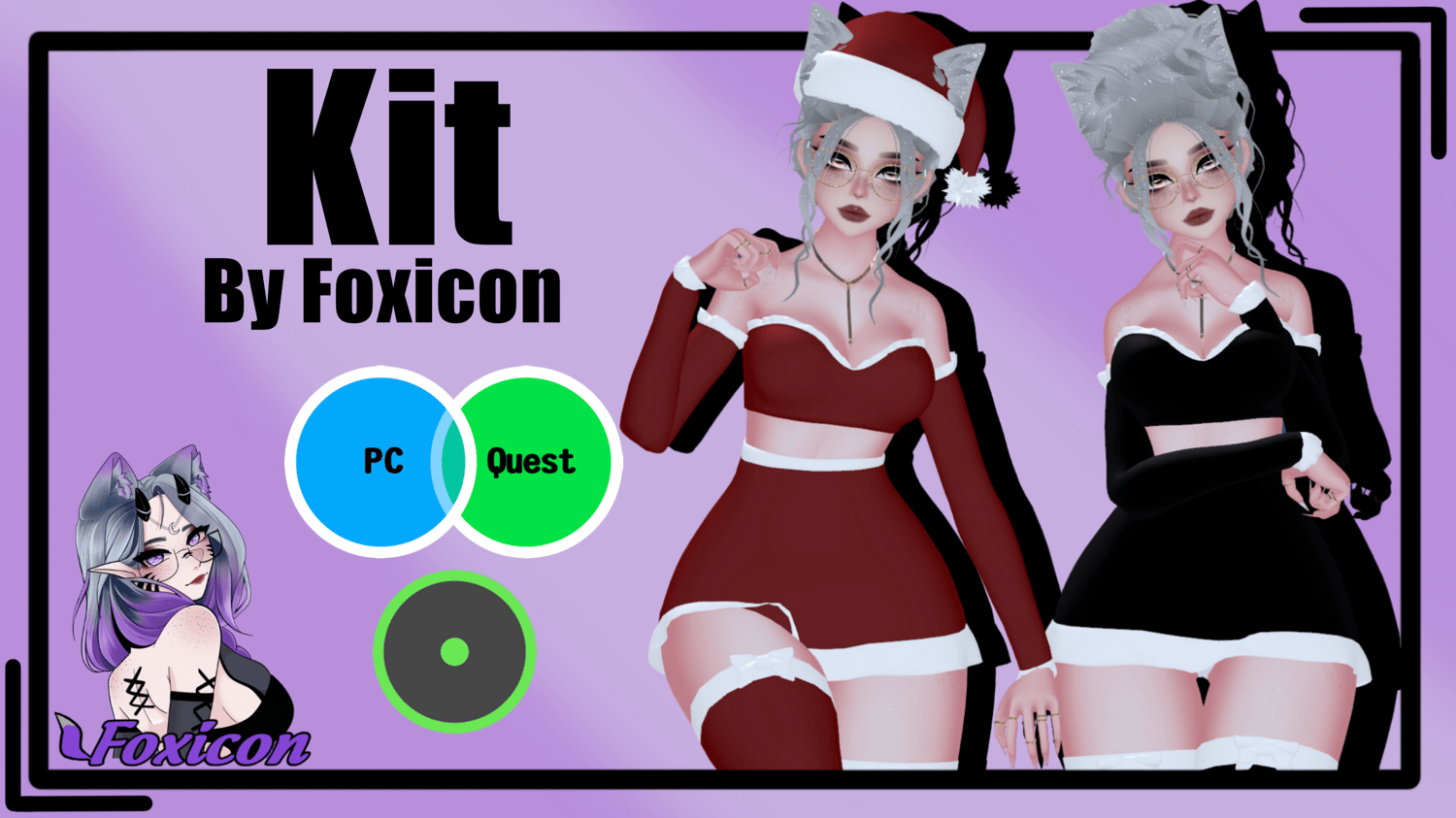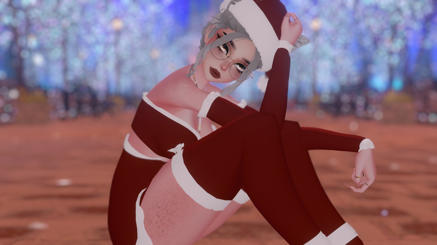 | Body by Pandaabear#9873 (EDITED BY ME, NO REUSE) | Head/Head Textures by DUCC#0008 (EDITED BY ME, NO REUSE) | Main Body Texture by Ying#6669 (EDITED BY ME, NO REUSE) | Hair Textures by Cicieaaa#7777 | Fake Index by Milkers~#4457 | VRCFury Tool | GoGoLoco by Franada | Rings by xSnail#2902 | Glasses by nini | Outfit & Gloves by DUCC#0008 | Ears by Evur#0001 | Heels by The Oasis | Abdomen Covering by loki#3000 | Thigh Highs by @berryvee | Bun by @NESSYY. | Santa Hat by Cupkake | Necklace by bookieson_ |