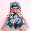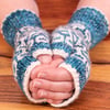 They are designed and made in BlackkElephantUK DK weight yarn colourway Ocean warrior and natural, and there is a matching hat too!