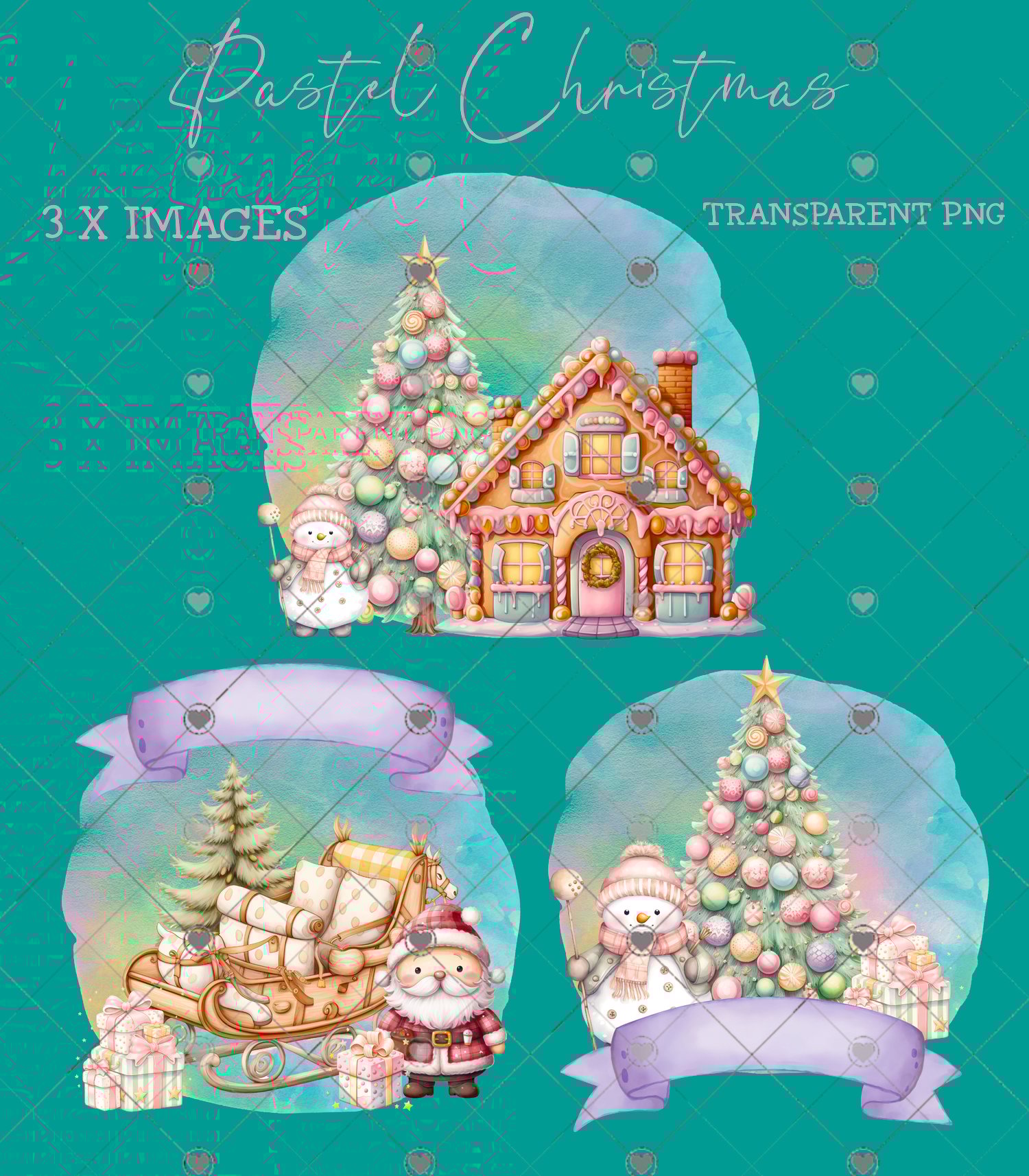 3 gorgeous pastel colour Christmas images