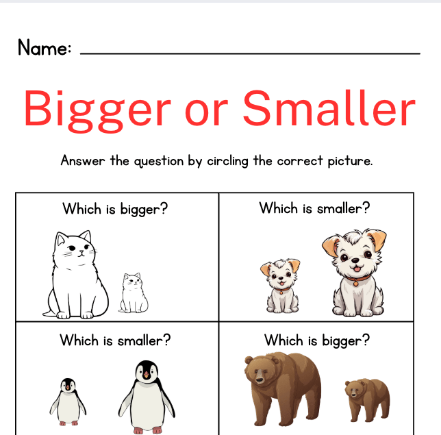 Help your little learner understand size differences with this fun and engaging printable! This Size Comparison Worksheet introduces the concept of big vs. small through visual activities and simple exercises designed for preschoolers and kindergartners.