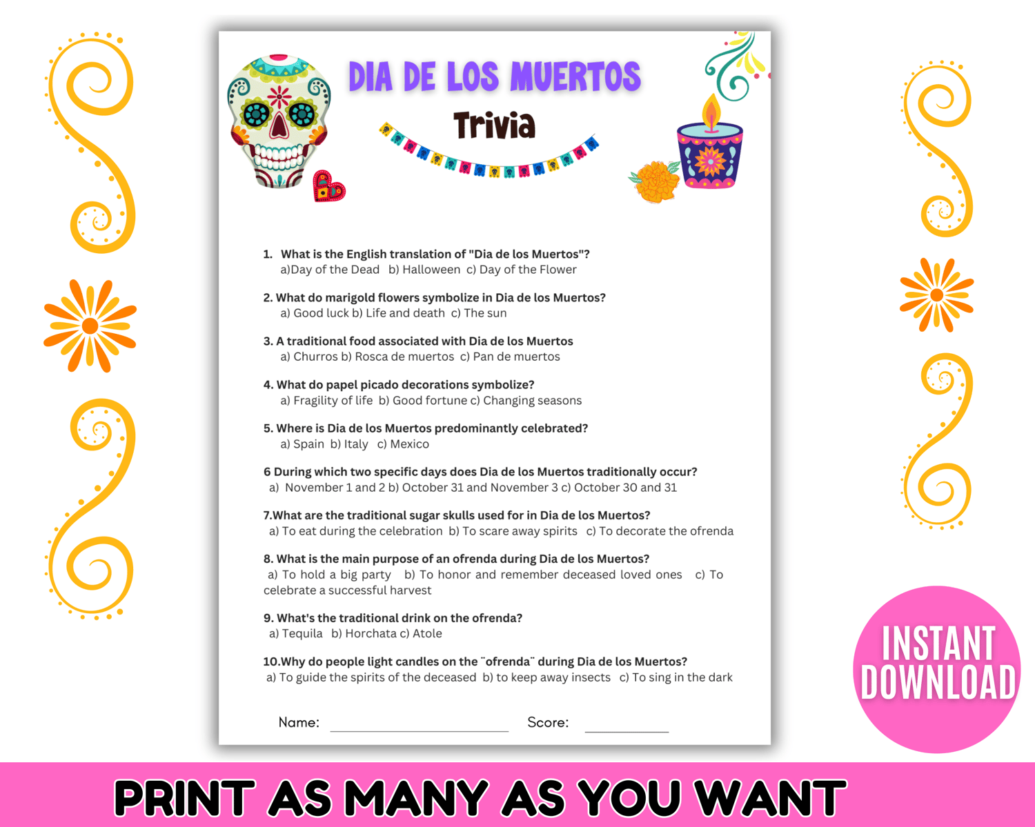 Dia De Los Muertos, Halloween Trivia Game, Day of the Dead, Mexican Party Games