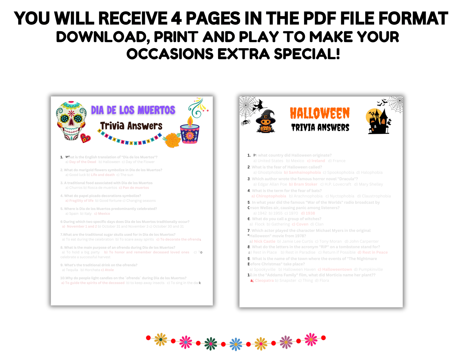 These Dia De Los Muertos and Halloween Trivia games are the perfect Holiday games to make your spooktacular and Day of the Dead parties and celebrations extra special!