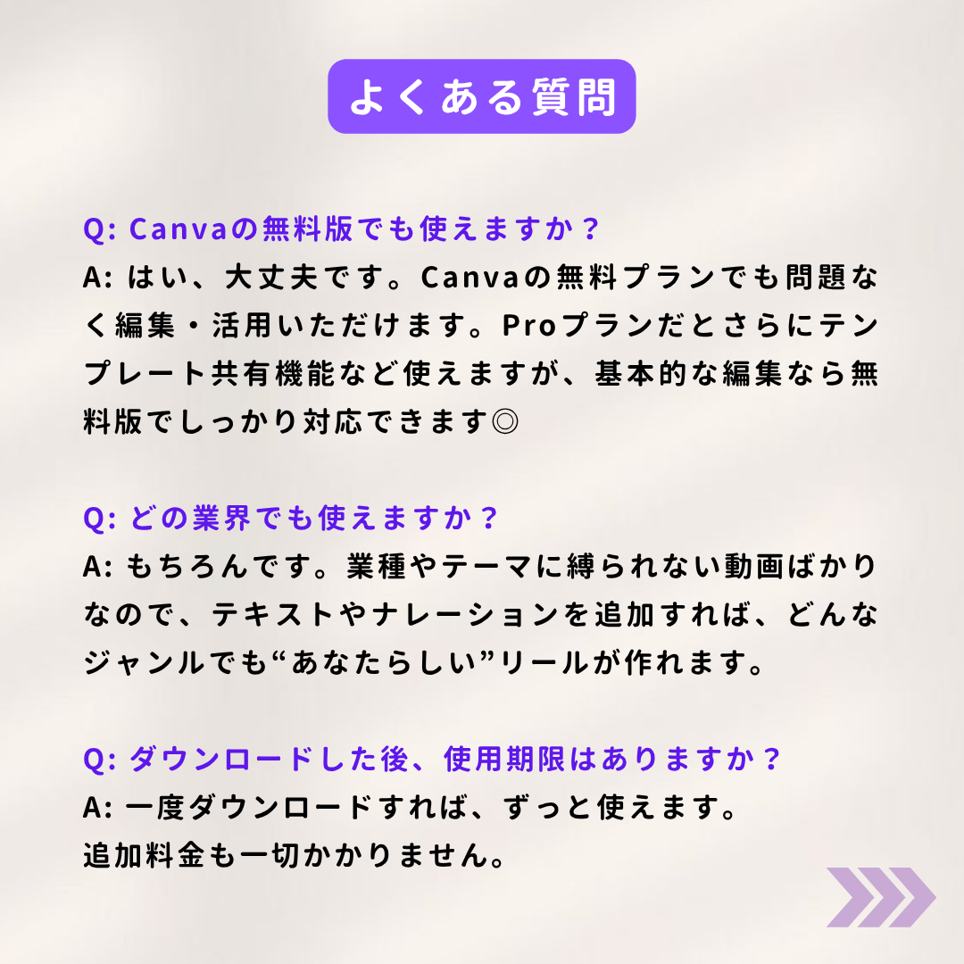 SNSでの顔出しに抵抗がある方、忙しくて撮影時間が取れない方、リール投稿を始めたいけれど何から手をつけていいか分からない方におすすめです。今すぐこの動画素材を手に入れて、今日から魅せるリール投稿をスタートしましょう!