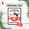 Meowy Christmas Cat Gift Tags | Catpucinno Mini Cards | Holiday Gift Tags for Coffee Gifts | Christmas Tags for coworkers, cat lovers, friends, and family