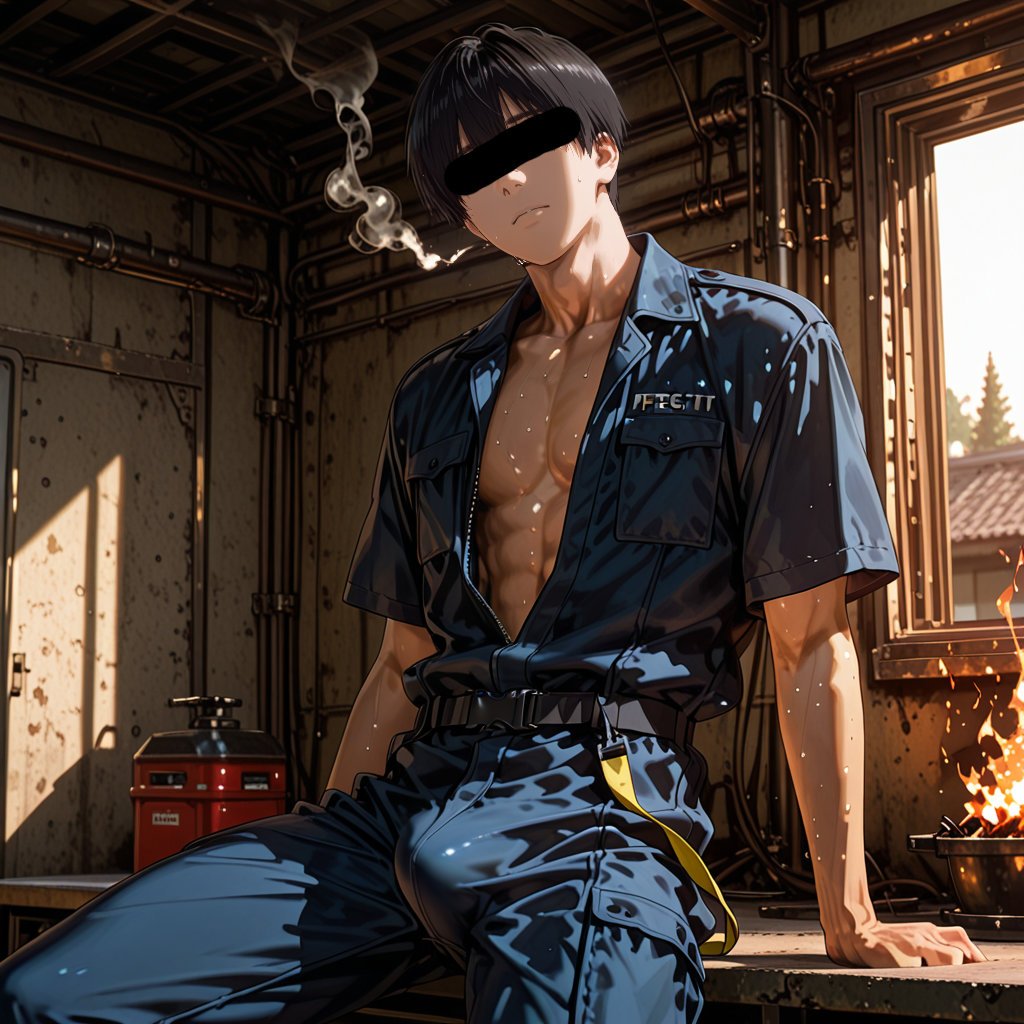 The theme is ""work scenes"" of firefighters, and the charm of the masculine characters of the firefighters is boldly expressed.
